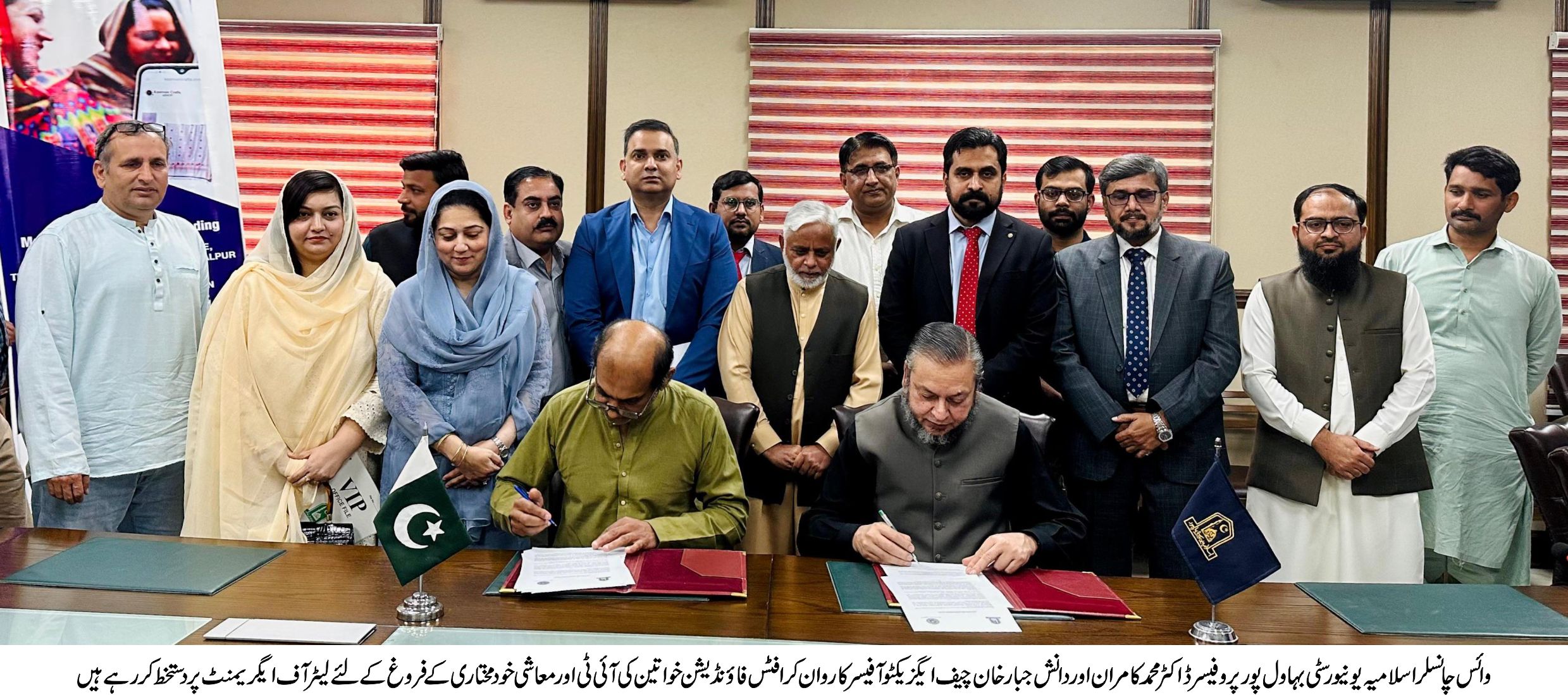 اسلامیہ یونیورسٹی بہاولپور کے شعبہ ڈیٹا سائنس نے یو این ویمن پاکستان، کاروان کرافٹس فاؤنڈیشن کے تعاون سے نافذ ہونے والے ڈیجیٹلائزیشن فار وومنز اکنامک امپاورمنٹ پروجیکٹ کے تحت ایک لیٹر آف ایگریمنٹ پر دستخط