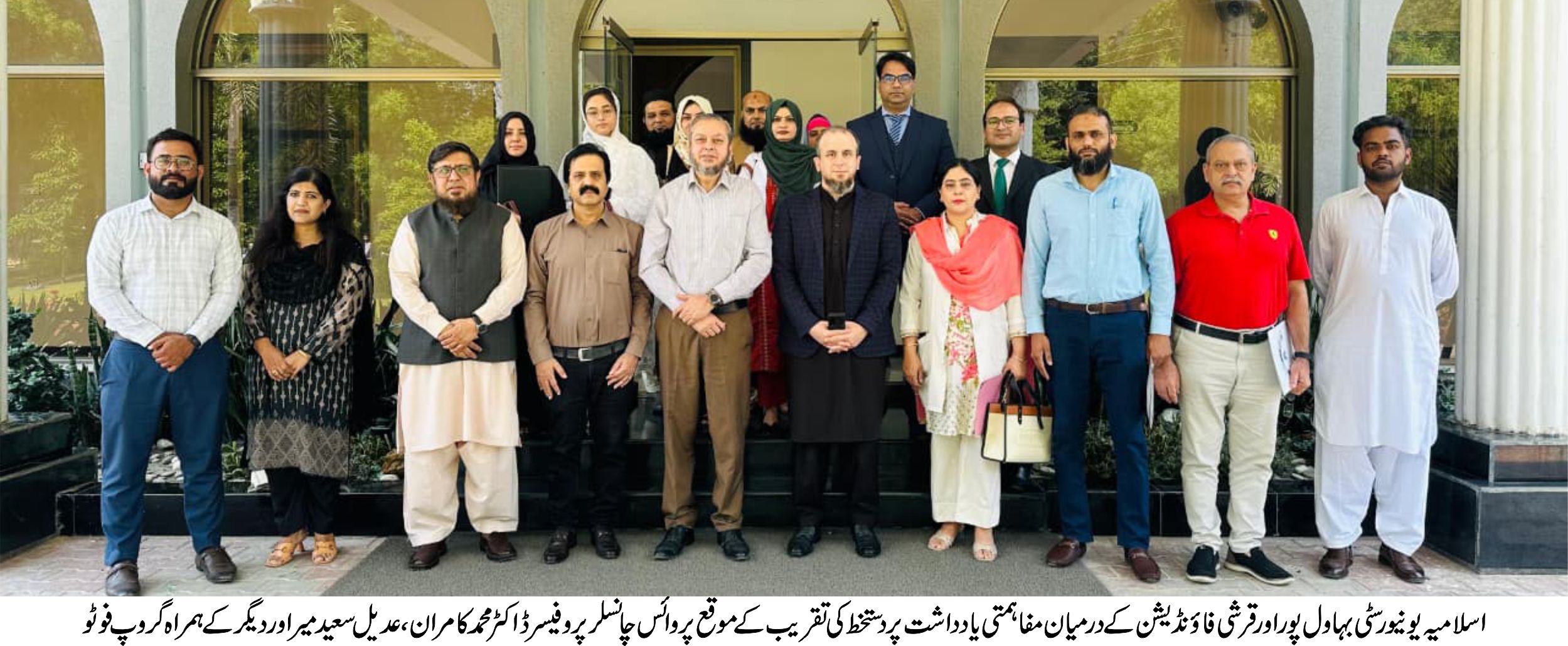 اسلامیہ یونیورسٹی بہاول پور اور قرشی فاؤنڈیشن کے درمیان مفاہمتی یادداشت پر دستخط ……. معاہدے کے تحت قرشی فاؤنڈیشن اسلامیہ یونیورسٹی بہاول پور کے طلباءوطالبات کےلیے فلاحی اقدامات کرے گی