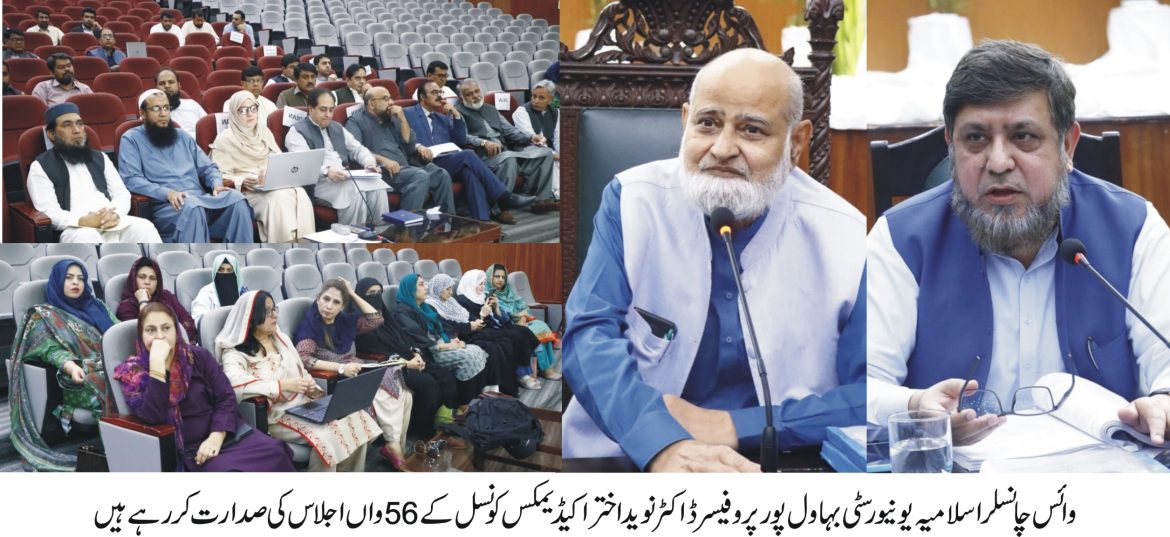 اسلامیہ یونیورسٹی بہاول پور کی اکیڈمک کونسل کا 56واں اجلاس وائس چانسلر پروفیسر ڈاکٹر نوید اختر کی زیر صدارت منعقد ہوا۔اجلاس میں ڈائریکٹر اکیڈیمکس پروفیسر ڈاکٹر جواد اقبال نے گزشتہ اجلاس میں کئے گئے فیصلوں پر عملدرآمد کا جائزہ پیش کیا۔ شرکا نے بی ایس بائیو میڈیکل انجینئرنگ اور بی ایس الیکٹریکل انجینئرنگ ٹیکنالوجی کے نظر ثانی نصاب کی منظوری دی۔ نیشنل ٹیکنالوجی کونسل کے نوٹیفکیشن کے مطابق ایف ایس سی پری میڈیکل کے حامل طلبا وطالبات کو بی ایس الیکٹریکل انجینئرنگ ٹیکنالوجی میں داخلہ دینے کی منظوری دی گئی۔ انجینئرنگ ٹیکنالوجی الیکٹریکل پروگرام میں ایم ایس ڈگری پروگرام شروع کرنے کے لیے ہائر ایجوکیشن کمیشن سے اجازت لینے کی منظوری دی گئی۔ اس موقع پر ڈیپارٹمنٹ آف ٹرانسلیشن اسٹڈیز، ڈیپارٹمنٹ آف انفارمیشن ٹیکنالوجی اور ڈیپارٹمنٹ آف آرکیٹیکچر سے متعلق ایجنڈا ایٹمزپر بھی غور کیا گیا۔ ایم ایس انفارمیشن ٹیکنالوجی کے نظر ثانی شدہ نصاب کی منظوری دی گئی۔ آرکیٹیکچر کونسل کی پالیسی کے مطابق بیچلر آف آرکیٹکچر 5 سالہ پروگرام میں نظر ثانی داخلہ پالیسی کی منظوری دی گئی۔ اجلاس میں یونیورسٹی انٹی پلیجرزم سٹنڈنگ کمیٹی کی ازسرنو کی تشکیل اور انٹی پلیجرزم کمیٹی ویژن 2 کو اپنانے کی منظوری دی گئی۔ شعبہ پلانٹ بریڈنگ اینڈ جینٹکس کے نصاب سے متعلق تبادلہ خیال کیا گیا۔ ہائر ایجوکیشن کمیشن گریجویٹ پالیسی 2023کے نفاذ کی منظوری دی گئی۔ ڈائریکٹوریٹ آف ایڈوانسڈ اسٹڈیز اینڈ ریسرچ کے آفیشل نام کی منظوری دی گئی۔ اجلاس میں پوسٹ ڈاکٹریٹ فیلوشپ پروگرام کی پالیسی بھی زیر غور آئی۔اجلاس میں ڈینز، تدریسی اور انتظامی شعبہ جات کے سربراہان موجود تھے۔