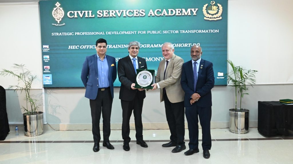 اسلام آباد: ہائر ایجوکیشن کمیشن (HEC) نے سول سروسز اکیڈمی (CSA) لاہور کے تعاون سے پانچ مراحل پر مشتمل استعداد کار بڑھانے کے خصوصی پروگرام کو کامیابی سے مکمل کر لیا، جس میں تقریباً 100 افسران—including ڈائریکٹر جنرلز، ڈائریکٹرز، ڈپٹی اور اسسٹنٹ ڈائریکٹرز—نے شرکت کی۔یہ پروگرام نیشنل اکادمی آف ہائر ایجوکیشن (NAHE) کی مینیجنگ ڈائریکٹر ڈاکٹر نور امنہ ملک کی قیادت میں شروع کیا گیا تھا، جس کا مقصد گورننس اور اختراعات کے بدلتے تقاضوں کے مطابق ایک مؤثر اور پروگریسو ورک فورس تیار کرنا تھا۔سینئر مینجمنٹ کوہورٹ کی اختتامی تقریب کے مہمانِ خصوصی چیئرمین ایچ ای سی ندیم محبوب تھے۔ انہوں نے اس اقدام کو سراہتے ہوئے سی ایس اے کے ساتھ تعاون کو ’’تاریخی سنگِ میل‘‘ قرار دیا۔ڈائریکٹر NAHE ڈاکٹر منیر احمد نے کہا کہ یہ شراکت داری ادارہ جاتی تعاون کی بہترین مثال ہے، جو مستقبل کے پروگرامز کے لیے رول ماڈل ثابت ہو گی۔پروگرام کی مؤثر ڈیزائننگ اور کامیاب تکمیل ڈپٹی ڈائریکٹر (NAHE) محترمہ سعدیہ بخاری نے انجام دی، جن کے کام کو بھی تقریب میں سراہا گیا۔