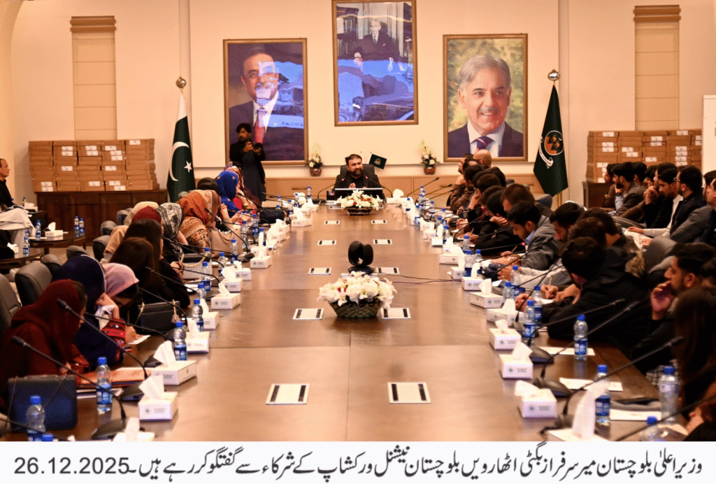 وزیر اعلیٰ بلوچستان میر سرفراز بگٹی نے کہا ہے کہ نوجوان پاکستان کا روشن مستقبل اور قوم کا اصل سرمایہ ہیں، جنہیں درست تاریخی حقائق اور قومی بیانیے سے آگاہ کرنا وقت کی اہم ترین ضرورت ہے وہ اٹھارویں بلوچستان نیشنل ورکشاپ کے شرکاءسے خطاب کر رہے تھے . وزیر اعلیٰ نے کہا کہ پاکستان ایک مضبوط اور ناقابلِ تسخیر ریاست ہے اور ہمیشہ قائم و دائم رہے گا ریاست کبھی تھکتی نہیں، پاکستان کو کیک کی طرح تقسیم کرنے کا خواب دیکھنے والے عناصر ہمیشہ ناکام ہوں گے انہوں نے نوجوانوں پر زور دیا کہ وہ بغیر تحقیق کسی بھی منفی بیانیے کی اندھی تقلید کے بجائے مثبت اور سچ پر مبنی سوچ اپنائیں میر سرفراز بگٹی نے کہا کہ وہ نوجوانوں کے سخت سے سخت سوالات کا جواب دلیل، مکالمے اور حقائق کی بنیاد پر دینے کے لیے تیار ہیں اور ہر تعلیمی ادارے، ہر جامعہ اور ہر قومی فورم پر نوجوانوں سے مکالمے کے لیے ہمہ وقت دستیاب ہیں .