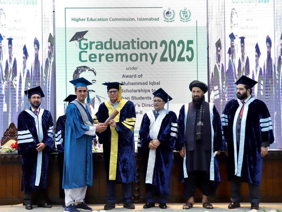 انجینئر محمد رضا چوہان نے اسکالرشپ منصوبے کے دوسرے مرحلے کا جائزہ پیش کیا، جسے 2018 میں 7.3 ارب روپے کے تخمینی لاگت کے ساتھ منظور کیا گیا تھا اور یہ 2027 تک جاری رہے گا۔ انہوں نے اس منصوبے کے تین ہزار افغان طلبہ، ان کے خاندانوں اور کمیونٹیز پر مثبت سماجی و معاشی اثرات کو اجاگر کیا، جو اعلیٰ تعلیم کے ذریعے دیرپا تبدیلی لائیں گے۔ایچ ای سی کے پراجیکٹ ڈائریکٹر (ایچ آر ڈی) جناب ذیشان خان نے IMSciences کی کاوشوں کو سراہا اور افغان فیکلٹی اور حکام کے لیے تربیتی پروگراموں کے ذریعے تعلیمی تعاون جاری رکھنے کی ضرورت پر زور دیا۔فارغ التحصیل طلبہ کو روشن مستقبل کی نیک خواہشات، جو افغانستان کی ترقی میں اپنا کردار ادا کریں گے!