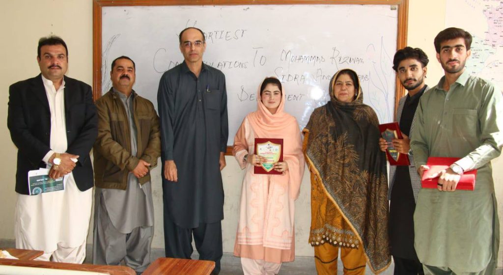 اسی طرح میر مہراب خان نے آل پاکستان آرٹیکل رائٹنگ مقابلے میں تیسری پوزیشن حاصل کی۔اس موقع پر شعبہ کے چیئرمین ڈاکٹر عبدالقادر مینگل نے طلبہ کی محنت، لگن اور علمی کارکردگی کو سراہتے ہوئے انہیں مستقبل میں بھی اسی جذبے کے ساتھ آگے بڑھنے کی تلقین کی۔تقریب کی میزبانی اسسٹنٹ پروفیسر فائزہ میر نے کی، جنہوں نے کامیاب طلبہ کو شعبہ کے لیے باعثِ فخر قرار دیا۔تقریب میں جناب غلام دستگیر نے طلبہ سے حوصلہ افزا خطاب کیا اور ان کی کامیابیوں کو سراہا۔آخر میں نمایاں کارکردگی دکھانے والے طلبہ کو شعبہ کے چیئرمین ڈاکٹر عبدالقادر مینگل نے شیلڈز پیش گئیں۔