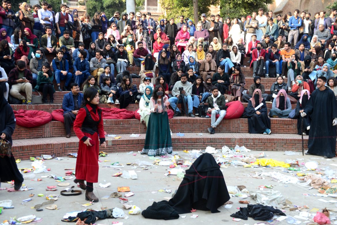 گورنمنٹ کالج یونیورسٹی لاہور میں ماحولیاتی مسائل اور سماجی چیلنجز کو اجاگر کرنے کے لیے انگریزی مختصر ڈرامہ“دھوبی کا کتا”پیش کیا گیا۔ یہ منفرد ڈرامہ شعبہ انگریزی ادب کے طلباء نے وومن ڈویلپمنٹ سینٹر کے تعاون سے تخلیق کیا۔ڈرامہ میں شہر لاہور کو ماحولیاتی چیلنجز اور اس سے منسلک معاشرتی رویوں کو اجاگر کیا گیا۔کاسٹ میں علیشبہ فیاض، معظم حسن، زوہا عباس، اقصیٰ ظفر اور دیگر شامل تھے۔ یہ ڈرامہ ماحولیاتی ذمہ داری کا شعور اجاگر کرنے میں کامیاب رہا اور سامعین کو خوب متاثر کیا۔