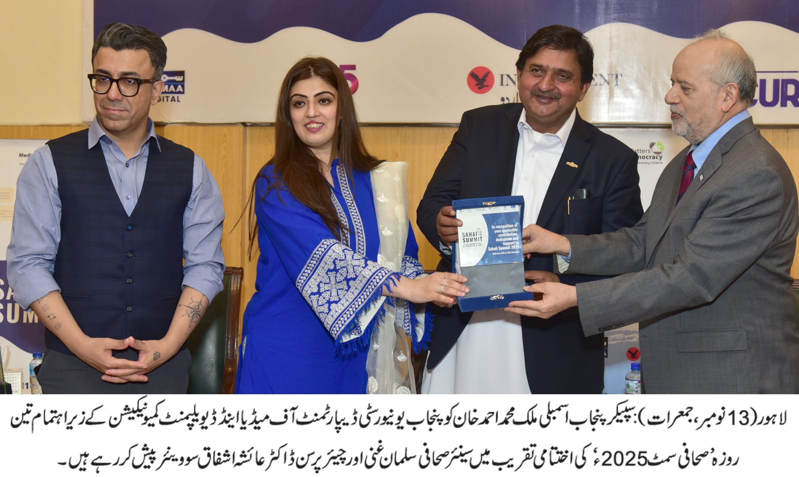 لاہور(13نومبر،جمعرات)ڈیپارٹمنٹ آف میڈیا اینڈ ڈیویلپمنٹ کمیونیکیشن کے زیر اہتمام تین روزہ ’صحافی سمٹ 2025ء‘کی اختتامی تقریب سے الرازی ہال میں خطاب کررہے تھے۔ اس موقع پرسینئر صحافی سلمان غنی، چیئرپرسن ڈیپارٹمنٹ آف میڈیا اینڈ ڈیویلپمنٹ کمیونیکیشن ڈاکٹرعائشہ اشفاق، فاؤنڈر ایم ایم ایف ڈی اسد بیگ، شعبہ جات کے سربراہان، میڈیا نمائندگان، فیکلٹی ممبران اورطلباؤطالبات نے بڑی تعداد میں شرکت کی۔اپنے خطاب میں ملک محمد احمد خان نے کہا کہ مصنوعی ذہانت زندگی کے ہر شعبے کو متاثر کررہی ہے۔ انہوں نے کہا کہ سوشل میڈیا حکومت بنانے اور گرانے میں اہم کردار ادا کر رہا ہے۔انہوں نے کہا کہ انسانی عقل نے ہی مصنوعی ذہانت کو تخلیق کیا ہے مگر بعض اوقات اپنی بنائی چیزیں بھی نقصان کا باعث بن سکتی ہیں۔ انہوں نے کہا کہ ہمیں اپنے تعلیمی بجٹ میں اضافہ کرنا ہوگاتاکہ نوجوان جدید ٹیکنالوجی سے استفادہ کرسکیں۔ا نہوں نے کہا کہ آزادی اظہار رائے کا احترام کیا جانا چاہیے اور تنقیدی سوچ پر کوئی قدغن نہیں ہونی چاہیے۔ انہوں نے کہا کہ پاک بھارت جنگ میں میڈیا نے انتہائی ذمہ داری کے ساتھ ابلاغ کی جنگ دنیا میں جیتی۔انہوں نے کہا کہ پاک فوج تربیت یافتہ اور مضبوط ہے اورپوری قوم نے جنگ کے دوران جرات و بہادری کا مظاہرہ کیا۔انہوں نے کہا کہ مصنوعی ذہانت کے دور میں صحافیوں کا کردار بہت چیلنجنگ بن چکا ہے۔ انہوں نے بہترین موضوع پر منعقدہ تقریب کے انعقاد پر منتظمین کی کاوشوں کو سراہا۔انہوں نے کہا کہ احتساب کا مطلب صرف دکھاوے کے مقدمات نہیں بلکہ حقیقی شفافیت، شواہد کی بنیاد پر فیصلے اور ہر شہری کے لیے برابری کے اصول کا نفاذ ہے۔سلمان غنی نے کہا کہ پاک بھارت جنگ میں ملکی میڈیا نے یکسوئی اور ہم آہنگی کا مظاہرہ کیا۔ انہوں نے کہا کہ مصنوعی ذہانت کبھی حقیقی ذہانت کا نعم البدل نہیں ہوسکتی۔انہوں نے کہا کہ خبر کو تمام تر پابندیوں کے باوجود کوئی نہیں روک پاتا۔انہوں نے کہا کہ خبر صحافی کی طاقت ہوتی ہے جس کا استعمال ذمہ داری سے کرنا چاہئے۔ڈاکٹر عائشہ اشفاق نے شراکت داروں، معزز مہمانوں اور شرکاء کا شکریہ ادا کرتے ہوئے کہا کہ تین روزہ سمٹ میں طلباء کو اپنے سینئرزکے تجربات سے بہت کچھ سیکھنے کا موقع ملا۔اسد بیگ نے کہا کہ مصنوعی ذہانت آج چکی ہے اور ہمیں اسے سیکھنا ہو گا