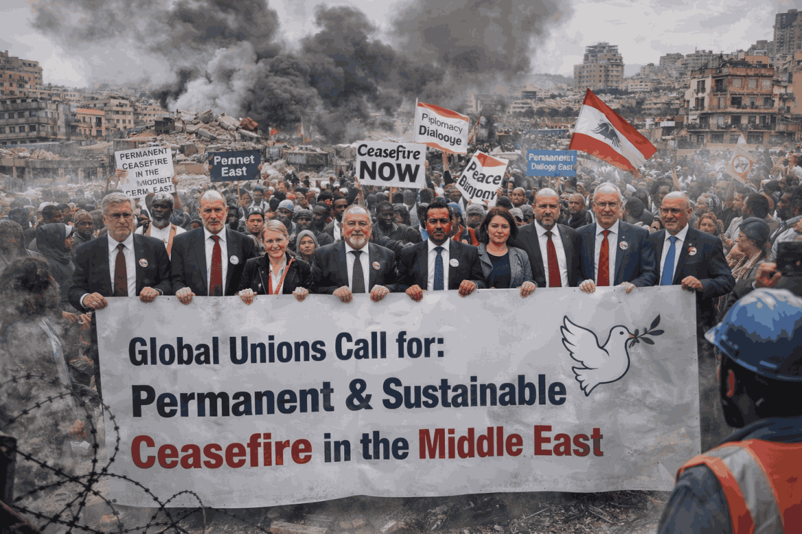 دنیا بھر کی بڑی مزدور تنظیموں نے مشرقِ وسطیٰ میں جاری جنگی صورتحال پر شدید تشویش کا اظہار کرتے ہوئے فوری، مستقل اور پائیدار جنگ بندی کا مطالبہ کیا ہے۔ عالمی یونینز کا کہنا ہے کہ خطے میں جاری جنگ اور عسکریت پسندی نے عام شہریوں، مزدوروں اور پوری کمیونٹیز کو تباہ کن نقصان پہنچایا ہے۔