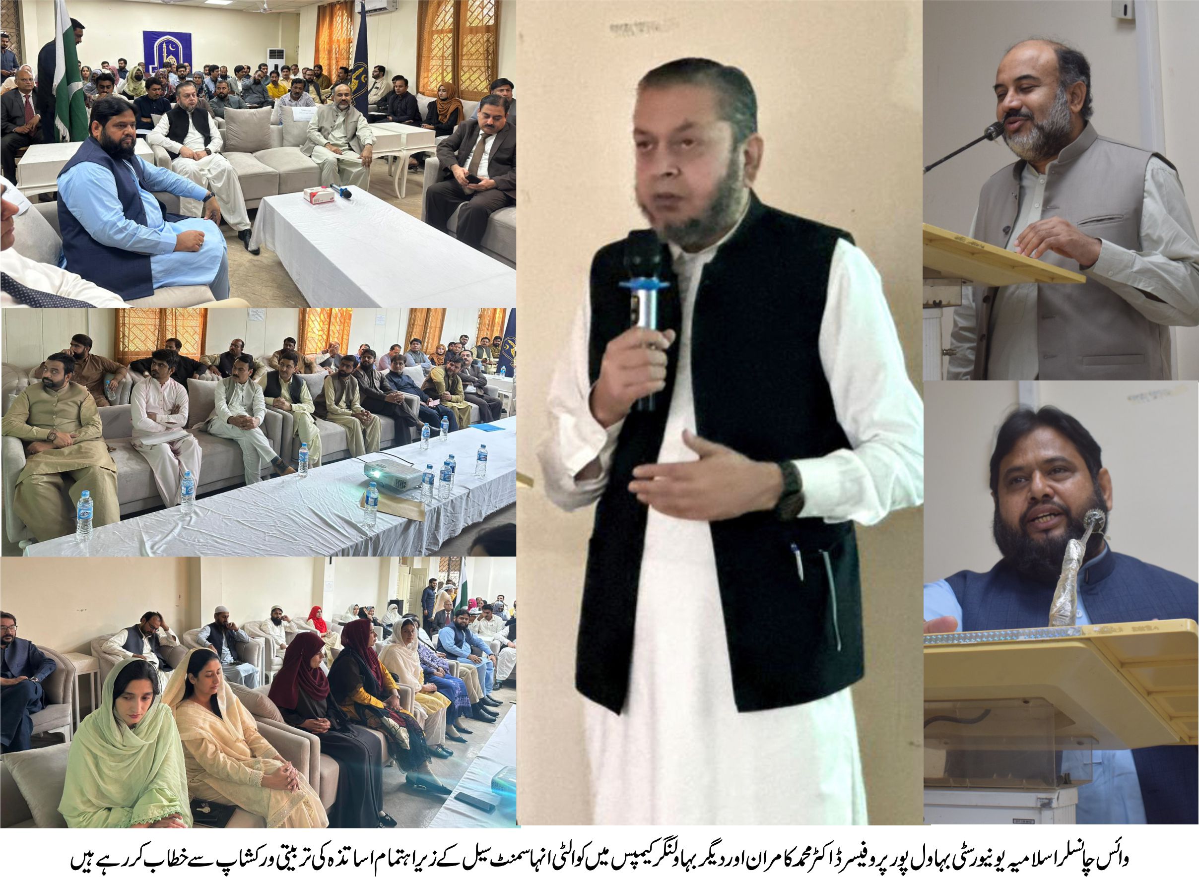 وائس چانسلر اسلامیہ یونیورسٹی بہاول پور پروفیسر ڈاکٹر محمد کامران نے کہا ہے کہ دنیا میں تدریسی طریقوں کو ٹیکنالوجی اور جدت سے آسان اور موثر بنا کر طلباء وطالبات کے لیے پائیدار نتائج کی حامل تعلیم دی جا رہی ہے۔ وائس چانسلر نے ان خیالات کا اظہار کوالٹی انہانسمنٹ سیل کے زیر اہتمام بہاولنگر کیمپس کے فیکلٹی ممبران اور ملحقہ کالجز کے اساتذہ کے لئے منعقدہ تربیتی ورکشاپ میں اپنے توسیعی خطاب میں کر رہے تھے۔ انہوں نے کہا کہ کوالٹی ایجوکیشن کے لیئے آوٹ کم بیسڈ ایجوکیشن یعنی نتیجہ خیز اور منظم تدریس بہت ضروری ہے ۔ کیمپس کے تدریسی معیار کو عالمی سطح اور ملحقہ کالجز میں درس و تدریس کو اسی معیار پر لایا جاے گا۔ اس مقصد کے لیے بہاولپور اور رحیم یار خان کیمپسز میں خصوصی تربیتی ورکشاپ منعقد ہو چکی ہیں۔ جامعہ کا کوالٹی انہانسمنٹ سیل بہت فعال انداز میں کام کر رہا ہے۔ ڈائریکٹر کوالٹی انہانسمنٹ سیل پروفیسر ڈاکٹر محمد اسداللہ مدنی نے کہا کہ ان تربیتی ورکشاپ کے انعقاد سے وائس چانسلر کے ویژن کے مطابق کوالٹی معیار ات کا یونیورسٹی کیمپسز اور ملحقہ کالجز میں یکساں نفاذ اور اطلاق ہوگا۔ کوالٹی انہانسمنٹ سیل کے نمائندگان اس ورکشاپ میں شرکت کے بعد ٹرینرز کے طور پر باقی اساتذہ کو تربیت دیں گے اور اس سلسلے کو وائس چانسلر کی ہدایت کے مطابق باقاعدہ بنایا جائے گا۔ کیمپس ڈائریکٹر پروفیسر ڈاکٹر رفاقت علی نے کوالٹی انہانسمنٹ سیل کی ورکشاپ بہاولنگر کیمپس میں منعقد کرنے اور خصوصی خطاب پر وائس چانسلر کا شکریہ ادا کیا۔ انہوں نے رجسٹرار محمد شجیع الرحمن اور ایفیلیشن کمیٹی کا بھی شکریہ ادا کیا۔ملحقہ کالجز کے اساتذہ نے تدریسی استعداد کار کو جدید خطوط پر استوار کرنے کے لیے ورکشاپس کے انعقاد کو سراہتے ہوئے معیار تعلیم میں اضافے کے لئے کلیدی اہمیت کا حامل اقدام قرار دیا۔ وائس چانسلر سے رکن صوبائی اسمبلی و ممبر سینڈیکیٹ سہیل خان زاہد نے بھی ملاقات کی اور یونیورسٹی میں معیار تعلیم کے لیے اقدامات کو سراہا۔ وائس چانسلر نے کیمپس میں ذوالوجی ڈیپارٹمنٹ کی لیبارٹری کا بھی افتتاح کیا۔ انہوں نے اردو، باٹنی، ذوالوجی، کمپیوٹر سائنس، فزکس اور مینجمنٹ سائنسز کی کلاسز کا دورہ کیا اور طلباء وطالبات کی تعلیم سے لگن اور نظم و ضبط کو سراہا ۔