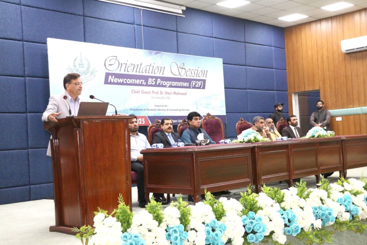 ڈین فیکلٹی آف سائنس پروفیسر ڈاکٹر شیر محمد نے جدید سائنسی رجحانات، تحقیق کی اہمیت اور یونیورسٹی کی جدید ترین لیبارٹریز کے استعمال پر روشنی ڈالی۔ ڈائریکٹرسٹوڈنٹ ایڈوائز سید غلام کاظم علی نے طلبہ کو یونیورسٹی میں موجود رہنمائی کے نظام، ہم نصابی سرگرمیوں اور سہولیات سے متعلق آگاہ کیا۔تقریب کے دیگر مقررین میں ڈائریکٹر جنرل ریجنل سروسز ڈاکٹر ملک توقیر احمد خان، ڈائریکٹر داخلہ سید ضیاء الحسین نقوی، کنٹرولر امتحانات میاں محمد ریاض حسین، ڈائریکٹر آئی سی ٹی ارشد منظور اور ٹریژرار ریاض حسین شامل تھے۔انہوں نے داخلہ، امتحانی نظام اور سٹوڈنٹ لائف سائیکل کے مختلف پہلوؤں بشمول سی ایم ایس اور ایل ایم ایس ، یونیورسٹی کے ویب سائٹ، فیس کی ادائیگیوں، علاقائی مراکز کے کردار اور طلبہ کی سہولیات کے بارے میں تفصیلی معلومات فراہم کیں۔رجسٹرار راجہ عمر یونس نے اپنے خطاب میں کہا کہ جامعہ میں داخلہ صرف تعلیمی سفر کا آغاز نہیں بلکہ ایک نئی ذمہ داری کا احساس بھی ہے۔ انہوں نے طلبہ پر زور دیا کہ وہ اپنے رویے اور طرز عمل کے ذریعے جامعہ کی اقدار، تہذیب اور روایات کا عملی مظاہرہ کریں۔اورینٹیشن سیشن کے اختتام پر طلبہ کو یونیورسٹی کے مختلف شعبہ جات کا دورہ کرایا گیا، جسے انہوں نے سراہا اور جامعہ کا حصہ بننے پر خوشی کا اظہار کیا۔