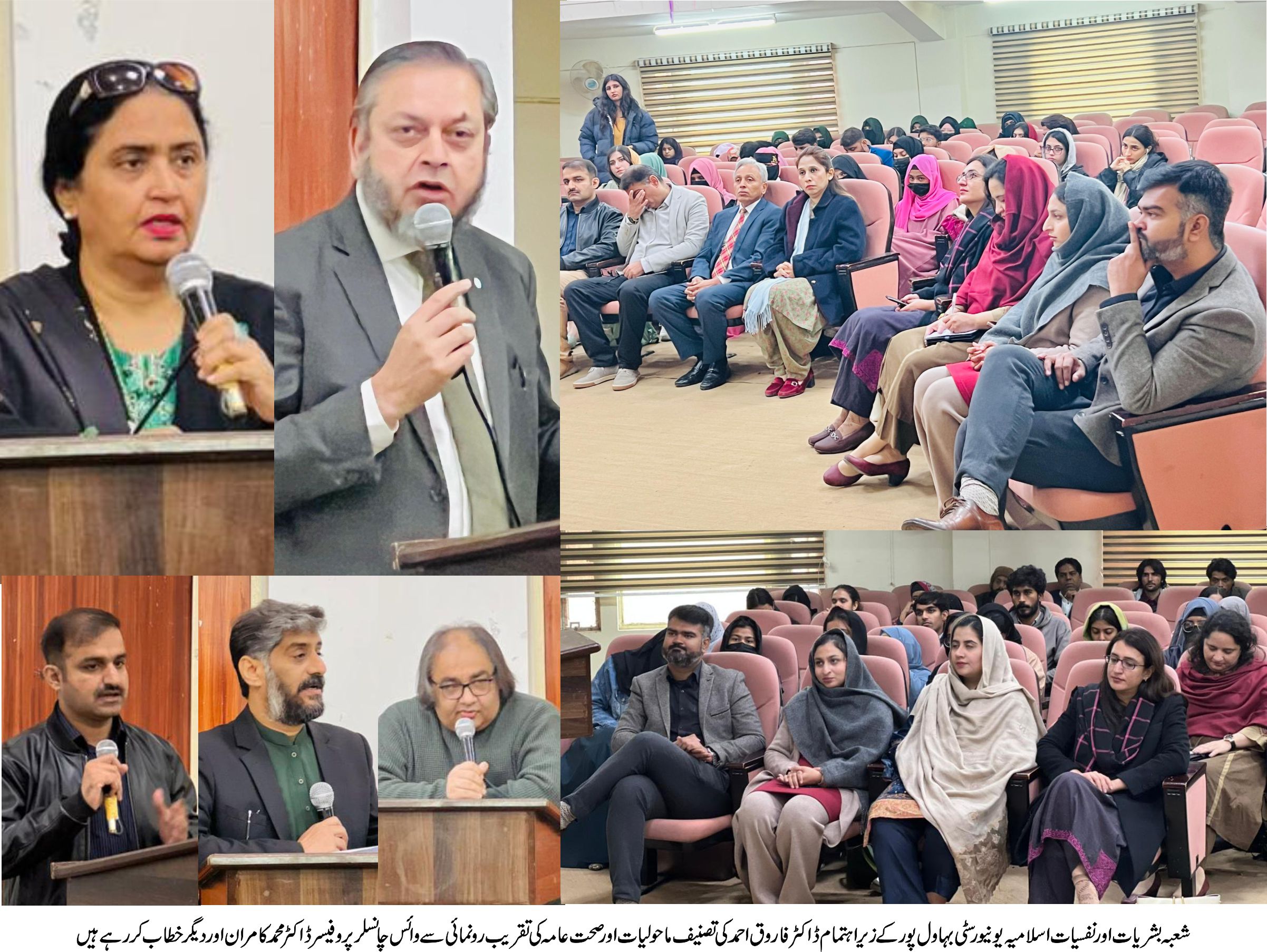 اسلامیہ یونیورسٹی بہاولپور کے شعبہ بشریات اور نفسیات کے زیر اہتمام ڈاکٹر فاروق احمد، چیئرمین شعبہ بشریات کی تصنیف ماحولیات اور صحت عامہ ، نظریہ، شواہد اور پائیدار حل کی طرف بصیرت کی رونمائی کی تقریب کا انعقاد کیا گیا۔ اس موقع پر وائس چانسلر پروفیسر ڈاکٹر محمد کامران نے بطور مہمان خصوصی شرکت کی اور کتاب کا باقاعدہ افتتاح کیا۔ اپنے خطاب میں انہوں نے ڈاکٹر فاروق احمد کو اس اہم تعلیمی کامیابی پر مبارکباد پیش کی اور کہا کہ اسپرنگر نیچر کے ساتھ اشاعت اس کام کی علمی قابلیت کی عکاسی کرتی ہے اور یونیورسٹی کے قومی اور بین الاقوامی علمی مقام میں مثبت کردار ادا کرتی ہے۔ انہوں نے عالمی چیلنجوں کا جواب دینے میں بین الضابطہ اسکالرشپ کی اہمیت پر زور دیا۔ ڈین، فیکلٹی آف سوشل سائنسز، پروفیسر ڈاکٹر روبینہ بھٹی نے بین الضابطہ کام کی اہمیت اور ایس ڈی جی کولیبریشن سینٹر کے کردار پر روشنی ڈالی تاکہ اس طرح کے کام کو اس انداز میں آسان بنایا جائے جو SDGs کے حصول میں خاطر خواہ اضافہ کرتا ہے۔حاضرین سے خطاب کرتے ہوئے، ڈاکٹر فاروق احمد نے ماحولیات، ثقافت اور صحت عامہ کے درمیان باہم مربوط تعلقات کو سمجھنے میں بشریات کے کردار پر تفصیل سے روشنی ڈالی۔ انہوں نے کہا کہ یہ کتاب ماحول، صحت عامہ اور سماجی مساوات کے درمیان پیچیدہ روابط پر توجہ مرکوز کرتے ہوئے، نظریاتی تناظر، تجرباتی ثبوت، اور پائیدار حل کو کیسے مربوط کرتی ہے۔