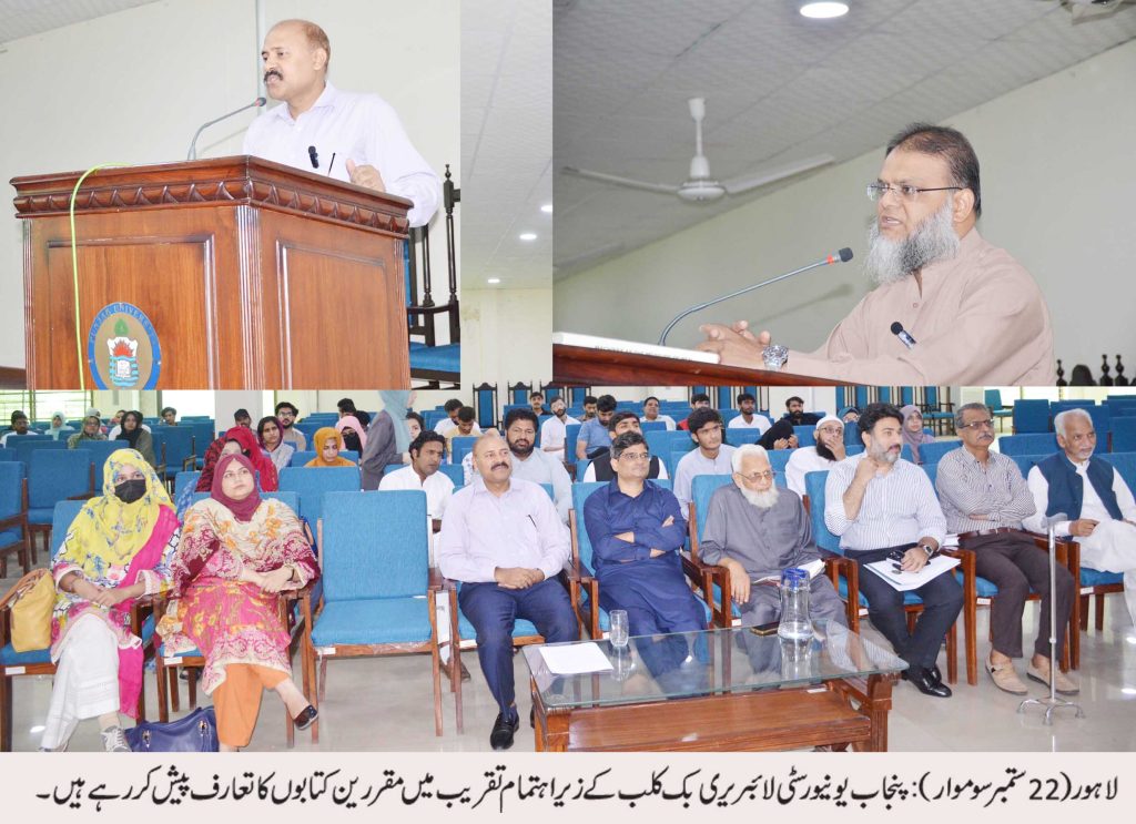 پنجاب یونیورسٹی لائبریری بک کلب کے زیر اہتمام طلباء، اساتذہ اور لائبریری صارفین میں پڑھنے، غور و فکر اور مکالمے کے کلچر کو فروغ دینے کے لیے دو کتابوں پر تعارفی تقریب کا انعقاد کیاگیا۔پہلی کتاب ”مشاہرے ادب: یونانی (مشاہیر ادب: یونانی (قدیم دور) محمد سلیم الرحمن کی کتاب پنجاب یونیورسٹی انسٹیٹیوٹ آف اردو لینگوئج اینڈ لٹریچر کے ایسوسی ایٹ پروفیسر ڈاکٹر محمد نعیم نے متعارف کرائی۔یہ کتاب یونانی ادبی شخصیات کی لازوال خدمات اور عالمی ادب پران کے اثرات کو اجاگر کرتی ہے۔ انگریزی تصنیف مائیکل ایڈس کی’’مشینز“پر شعبہ فلسفہ کے اسسٹنٹ پروفیسر ڈاکٹر رشید ارشد نے روشنی ڈالی جس سے حاضرین میں فکری تجسس اور بامعنی گفتگو کوتقویت ملی۔ چیف لائبریرین ڈاکٹر محمد ہارون عثمانی نے کہا کہ یہ پروگرام علم کے اشتراک اور اجتماعی سیکھنے کے لیے ایک متحرک پلیٹ فارم کے طور پر کام کرتا ہے۔ انہوں نے حاضرین اور مقررین کا شکریہ ادا کرتے ہوئے کہا کہ پنجاب یونیورسٹی لائبریری بک کلب یونیورسٹی کی علمی اور ثقافتی زندگی کا ایک لازمی حصہ بن چکا ہے، جو تنقیدی سوچ کو پروان چڑھاتے ہوئے قارئین اور کتابوں کے درمیان تعلق کو مضبوط کرتا ہے۔