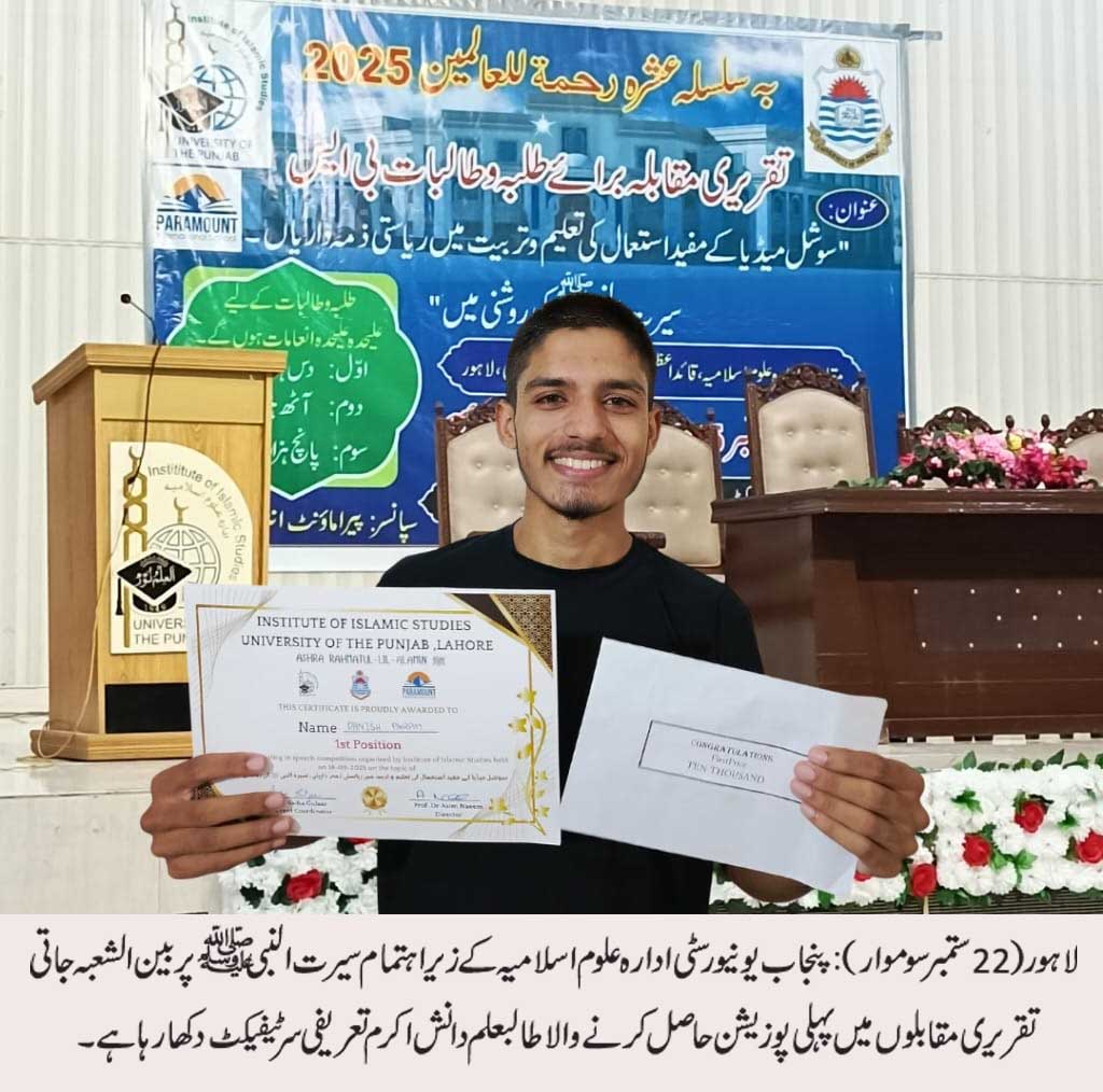 پنجاب یونیورسٹی ادارہ علوم اسلامیہ کے زیر اہتمام بین شعبہ جاتی تقریری مقابلوں کا انعقاد