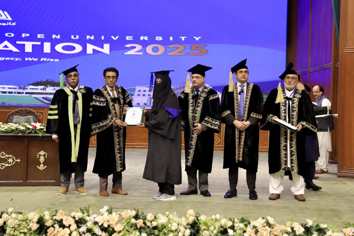 علامہ اقبال اوپن یونیورسٹی کے اسلام آباد چیپٹر کا کانووکیشن 2025 جناح کنونشن سینٹر میں پُروقار انداز میں منعقد ہوا جس میں 800 طلبہ و طالبات کو کامیابی کے ساتھ اپنی تعلیمی منزل تک پہنچنے پر ڈگریاں عطا ء کی گئیں جبکہ نمایاں کارکردگی دکھانے والے طلباء و طالبات کو گولڈ، سلور اور برونز میڈلز سے نوازا گیا۔اس یادگار تقریب کے مہمانِ خصوصی وفاقی وزیرِ تعلیم و پیشہ وارانہ تربیت خالد مقبول صدیقی تھے جبکہ وائس چانسلر پروفیسر ڈاکٹر ناصر محمود نے میزبانی کے فرائض انجام دیئے۔تقریب میں سیکرٹری تعلیم /قائم مقام چیئرمین ہائر ایجوکیشن کمیشن ندیم محبوب، مختلف جامعات کے وائس چانسلرز، اساتذہ، سماجی و سیاسی شخصیات نے بھرپور شرکت کی جس سے تقریب کو مزید وقار حاصل ہوا۔وفاقی وزیرِ تعلیم خالد مقبول صدیقی نے کامیاب ہونے والے طلباء و طالبات اور ان کے والدین کو مبارکباد پیش کرتے ہوئے کہا کہ آج آپ تعلیم کے میدان سے نکل کر عملی زندگی میں قدم رکھ رہے ہیں