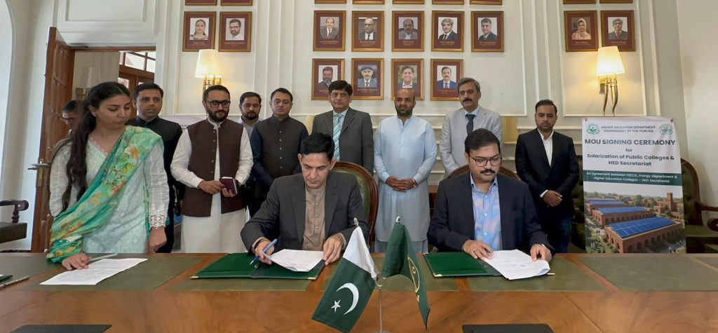 محکمہ ہائر ایجوکیشن پنجاب اور توانائی محکمہ کے درمیان سرکاری کالجوں اور عمارتوں کی سولرائزیشن کے لیے مفاہمتی یادداشت پر دستخطلاہور – حکومتِ پنجاب کے محکمہ اعلیٰ تعلیم (HED) اور محکمہ توانائی کے درمیان عوامی کالجوں اور عمارتوں کی سولرائزیشن کے منصوبے کے لیے مفاہمتی یادداشت (MoU) پر دستخط کیے گئے۔ یہ تقریب لاہور میں منعقد ہوئی جس کے مہمانِ خصوصی صوبائی وزیر تعلیم پنجاب، رانا سکندر حیات تھے۔تقریب میں سیکرٹری اعلیٰ تعلیم غلام فرید، سیکرٹری توانائی ڈاکٹر فاروق نوید، دونوں محکموں کے سینئر افسران، ڈی پی آئی (کالجز)، ڈائریکٹر لاہور ڈویژن اور مختلف کالجز کے پرنسپلز نے شرکت کی۔