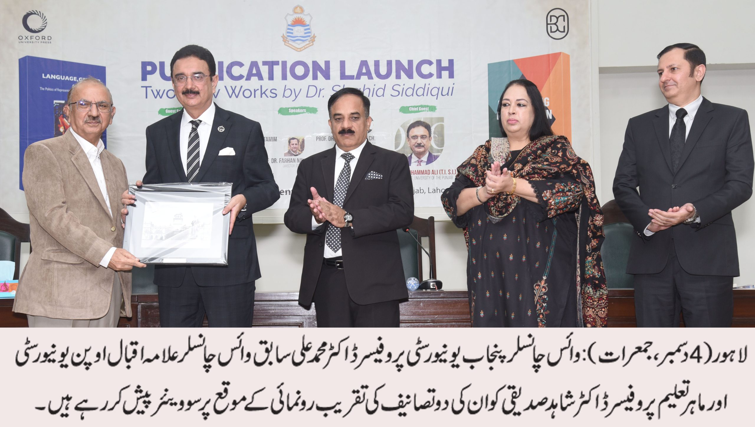 :وائس چانسلرپنجاب یونیورسٹی پروفیسر ڈاکٹر محمد علی نے کہا ہے کہ مسائل کے حل کے لئے مباحثے ضروری ہیں، کتابوں کے ذریعے علم اور اعتماد میں اضافہ ہوتا ہے۔ وہ پنجاب یونیورسٹی انسٹیٹیوٹ آف انرجی اینڈ انوائرمینٹل انجینئرنگ کے آڈیٹوریم میں سابق وائس چانسلر علامہ اقبال اوپن یونیورسٹی اورماہرتعلیم پروفیسرڈاکٹر شاہد صدیقی کی دو کتابوں کی تقریب رونمائی سے خطاب کررہے تھے۔ اس موقع پرپروفیسر ڈاکٹر شاہد صدیقی، لمزسے ڈاکٹر طیبہ تمیم، ڈائریکٹر ادارہ تعلیم و تحقیق ڈاکٹر عبدالقیوم چوہدری،ڈائریکٹر انسٹیٹیوٹ آف سوشل اینڈ کلچرل سٹڈیز ڈاکٹر فرحان نوید یوسف،چیئرپرسن شعبہ جینڈر سٹڈیز ڈاکٹر راعناملک، سیکریٹری اکیڈمک سٹاف ایسو سی ایشن ڈاکٹر محمد اسلام، محققین، تعلیم دان، فیکلٹی ممبران اور طلباؤطالبات نے بڑی تعداد میں شرکت کی۔ اپنے خطاب میں وائس چانسلر پروفیسرڈاکٹر محمد علی نے طلباؤطالبات کو نصیحت کرتے ہوئے کہا کہ دنیاجس تیزی سے بدل رہی ہے اگر اس تبدیلی کو ڈرائیو کرنا ہے تو مطالعے کی عادات کو اپنانا ہوگا۔ انہوں نے کہا کہ آئندہ پانچ سال میں زراعت، ابلاغیات، مواصلات، درس و تدریس کے ذرائع بدل جائیں گے، لہذاطلباؤطالبات کو صرف ڈگری نہیں بلکہ سیکھنے کے لئے پڑھنا ہوگا۔ انہوں نے کہا کہ طلبہ 30فیصد اپنے کلاس رومز میں جبکہ 70فیصد کلاس رومز سے باہر سیکھتے ہیں جس کیلئے ایسی سرگرمیوں کا انعقاد جاری رہنا چاہیے۔ انہوں نے کہا کہ ڈاکٹر شاہد صدیقی ملن سار، قابل اور محنتی شخص ہیں جن سے ہمیشہ سیکھنے کو ملتا ہے۔ انہوں نے کہا کہ مصنف نے اپنی تصانیف میں تعلیم، سیاست اور جینڈر کے مختلف پہلوؤں پرتفصیلی روشنی ڈالی ہے۔ ڈاکٹر شاہد صدیقی نے کہا کہ ہمیں ایسے گرایجوئیٹس پیدا کرنے ہیں جو معاشرے کے مسائل اور چیلنجز سے آگاہ ہوں۔انہوں نے کہا کہ طلبہ کی تخلیقی صلاحیتوں اور تنقیدی سوچ کو فروغ دینے کی ضرورت ہے۔ انہوں نے کہا کہ یہ کتب میرے ذاتی عملی مشاہدات کا نچوڑ ہیں جنہیں محققین، پالیسی ساز، طلبہ اور عام لوگ با آسانی سمجھ سکتے ہیں۔ انہوں نے کہا کہ دونوں کتب انٹر ڈسپلنری ہیں اور ہر باب میں کوئی نہ کوئی مسئلہ اجاگر کیا گیا ہے۔ انہوں نے تقریب کے انعقاد پر وائس چانسلر ڈاکٹر محمد علی اور ان کی ٹیم کا شکریہ اداکیا۔ ڈاکٹر طیبہ تمیم نے کہا کہ مصنف نے کتاب میں تعلیم کی اہمیت جس انداز سے اجاگر کیا ہے وہ قابل تعریف ہے جبکہ ان کتابوں کا ٹائٹل بھی قابل دید ہے۔ انہوں نے کہا کہ ہر شعبہ زندگی میں ترقی کیلئے تعلیم کا کردار بہت اہم ہوتاہے۔ انہوں نے کہا کہ ڈاکٹر شاہد صدیقی نے کتاب میں اساتذہ و طلبہ کے درمیان تعلقات پر آسان زبا ن میں بیان کیا ہے جسے پڑھ کر سوچ کے دریچے کھُلتے ہیں۔ ڈاکٹر عبد القیوم چوہدری نے کہا کہ ڈاکٹر شاہد صدیقی نے رینکنگ میں بہتری، آؤٹ آف سکول بچوں کے حوالے سے کتب بینوں کو اپنے نقطہ نظر سے انتہائی خوبصورتی سے آگاہ کیا ہے۔ ڈاکٹر فرحان نوید یوسف نے بہترین تصانیف پر ڈاکٹر شاہد صدیقی کو مبارک باد پیش کرتے ہوئے ان کی تحریرکو علمی دنیا میں خوبصورت اضافہ قرار دیا۔