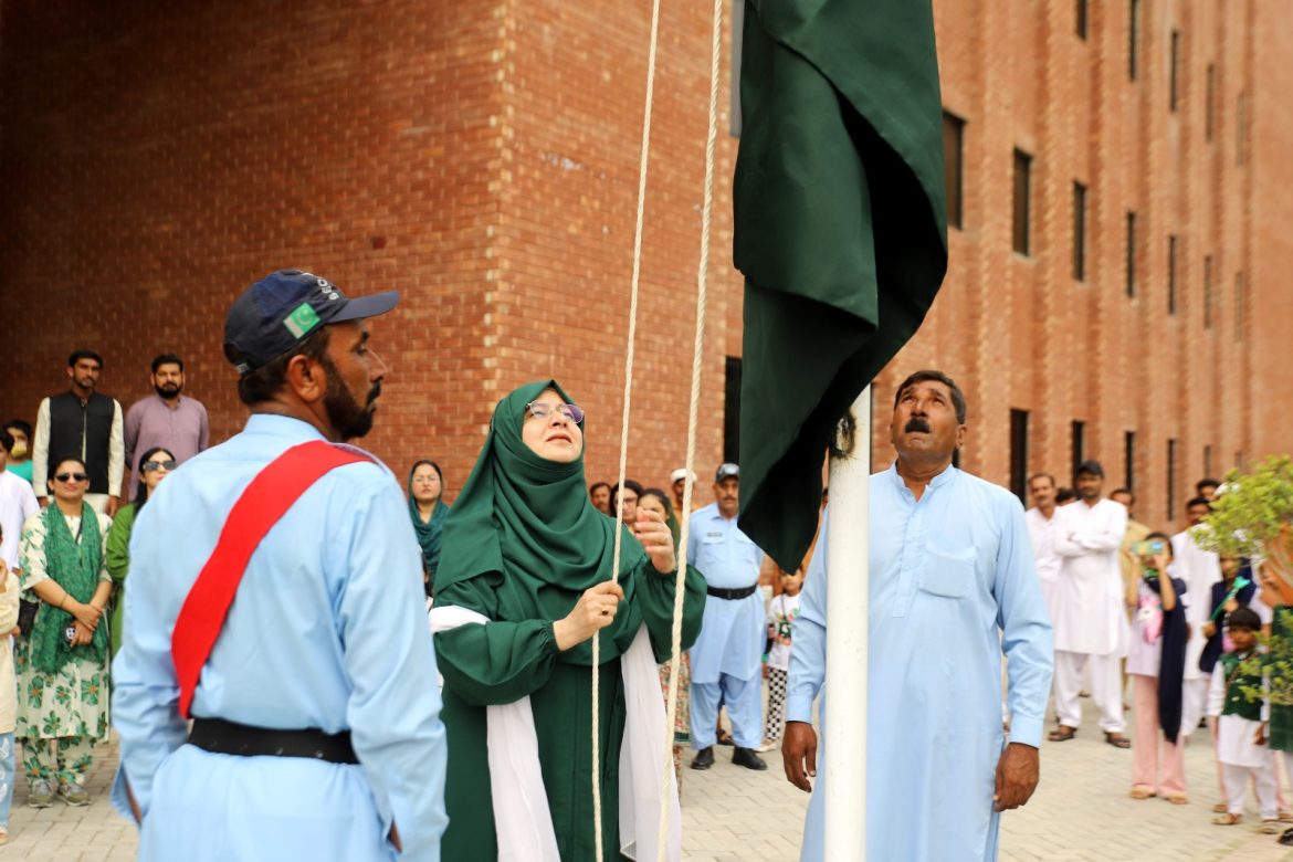 ملک پاکستان کی 79ویں یوم آزادی کے موقع پر معرکہ حق کے نام سے منسوب دی گورنمنٹ صادق کالج ویمن یونیورسٹی بہاولپور میں پرچم کشائی تقریب کا انعقاد کیا گیا۔پروفیسر ڈاکٹر شازیہ انجم وائس چانسلر دی گورنمنٹ صادق کالج ویمن یونیورسٹی بہاولپور نے پرو وائس چانسلر پروفیسر ڈاکٹر اشفاق محمود قریشی کے ہمراہ بطور مہمان خصوصی شرکت کی۔ تقریب میں وائس چانسلر پروفیسر ڈاکٹرشازیہ انجم نے گارڈ آف آنر کا معائنہ کیا اور پرچم کشائی کی۔ تقریب کا باقاعدہ آغاز تلاوت و نعت سے ہوا۔ نظامت کے فرائض ڈاکٹر سائرہ ارشاد نے ادا کئے۔ 79ویں یوم آزادی کی مناسبت سے دی گورنمنٹ صادق کالج ویمن یونیورسٹی میں طالبات کے مابین تقریری مقابلہ جات میں اول، دوئم آنے والی طالبات نے اپنی تقریریں پیش کیں۔اسی طرح ڈے کیئر سنٹر کے بچوں نے ملی نغموں پر سولو پرفارمنس دیکر حاضرین سے خوب داد سمیٹی ۔