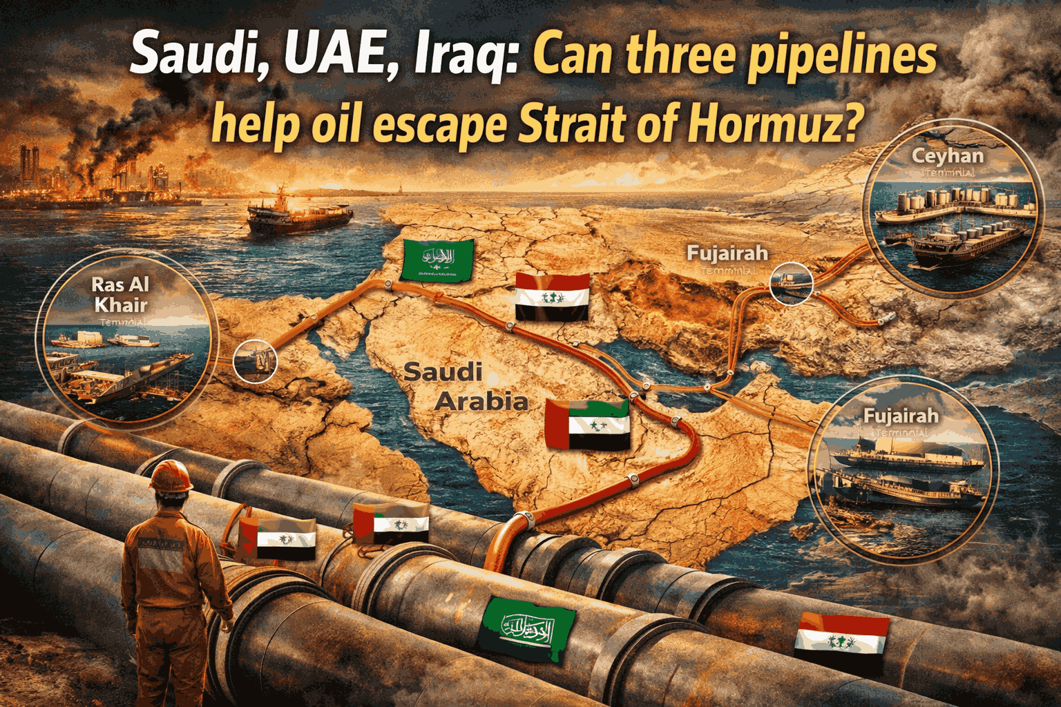 مشرقِ وسطیٰ میں جاری جنگ کے باعث آبنائے ہرمز میں تیل کی ترسیل شدید متاثر ہوئی ہے، جس کے بعد سعودی عرب، متحدہ عرب امارات اور عراق متبادل پائپ لائنز کے ذریعے تیل برآمد کرنے کی کوششیں تیز کر رہے ہیں۔ تاہم ماہرین کے مطابق یہ پائپ لائنز مکمل متبادل فراہم کرنے سے قاصر ہیں۔