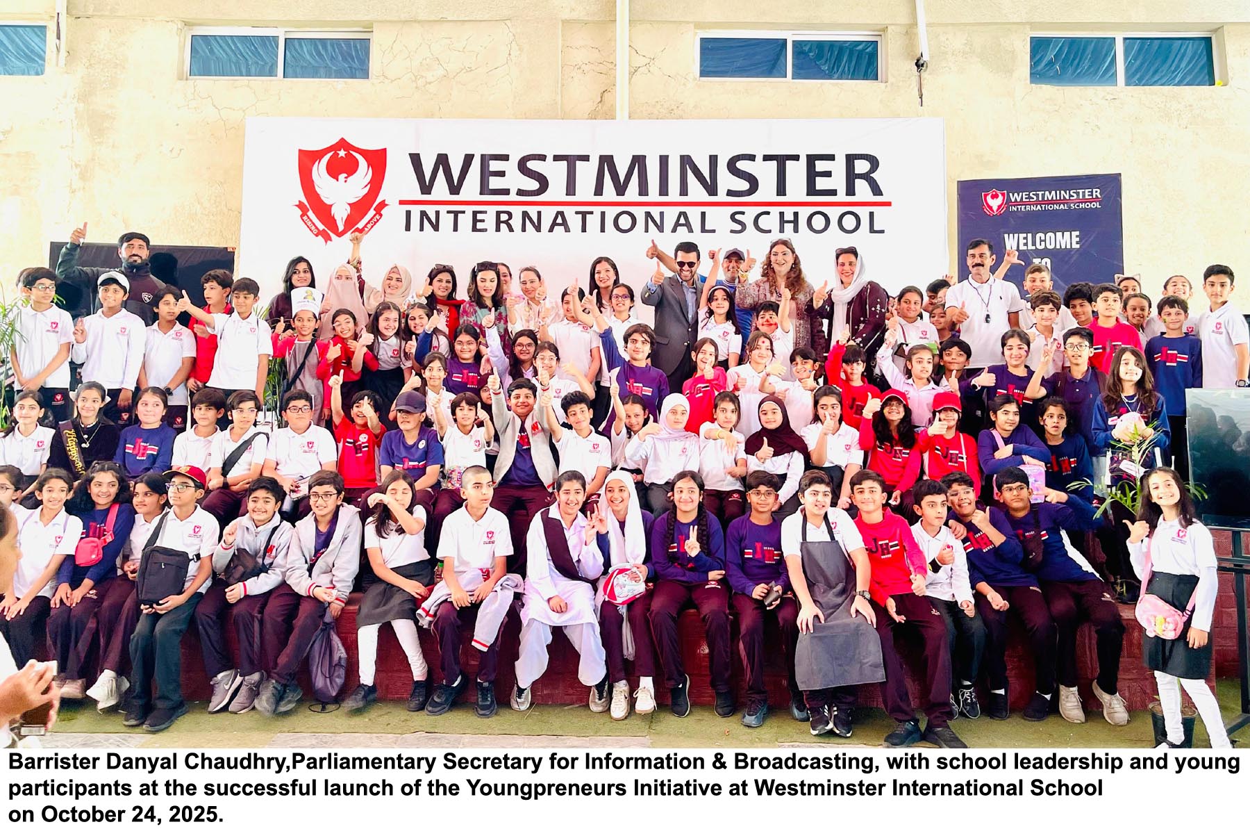 ویسٹ منسٹر انٹرنیشنل اسکول میں “ینگ پرینیورز انیشی ایٹو” کی تقریب میں پارلیمانی سیکرٹری برائے اطلاعات و نشریات، بیریسٹر دانیال چوہدریکی شرکت۔۔۔۔نو عمر طلبہ کے کاروباری صلاحیتوں کی تعریف