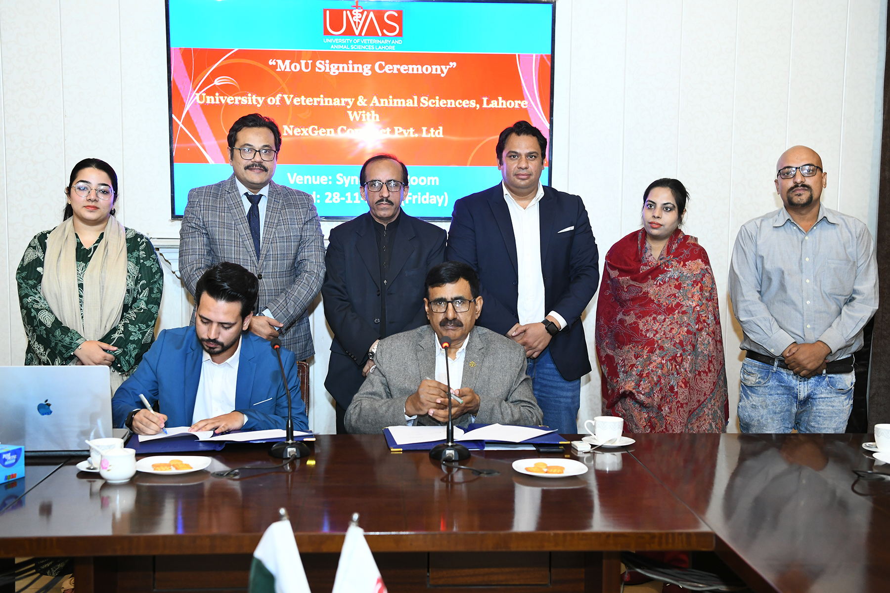 یونیورسٹی آف ویٹرنری اینڈاینیمل سائنسز لا ہو ر اور NexGen Connect پرا ئیو یٹ لیمیٹڈکے درمیان یواس بزنس سکول، بی بی اے، نیو ٹریشن اور ڈی وی ایم کے طلبہ میں پیشہ وارانہ عملی صلا حیتو ں کو انٹرن شپ کے زریعے اُجا گر کرنے کے لیئے مفاہمتی یاداشت کا معا ہد ہ طے پا یا۔یاداشت پر دستخط ویٹر نری یونیورسٹی سے وائس چانسلر میری ٹوریئس پروفیسر ڈاکٹر محمد یونس (تمغہ امتیاز) نے اور NexGen Connect سے چیف ایگزیکٹیو آفیسر مسٹر بلاول علی شاہ نے یونیورسٹی میں منعقدہ تقریب میں کیئے جبکہ دیگر اہم شخصیات میں ڈین فیکلٹی آف ویٹر نری سائنس پروفیسر ڈاکٹر انیلہ ضمیر درا نی،ڈین فیکلٹی آف لائف سائنسز بزنس مینجمنٹ پروفیسر ڈاکٹررا نا محمد ایوب سمیت دونوں اداروں کے آفیشلز کی کثیر تعداد نے شر کت کی۔