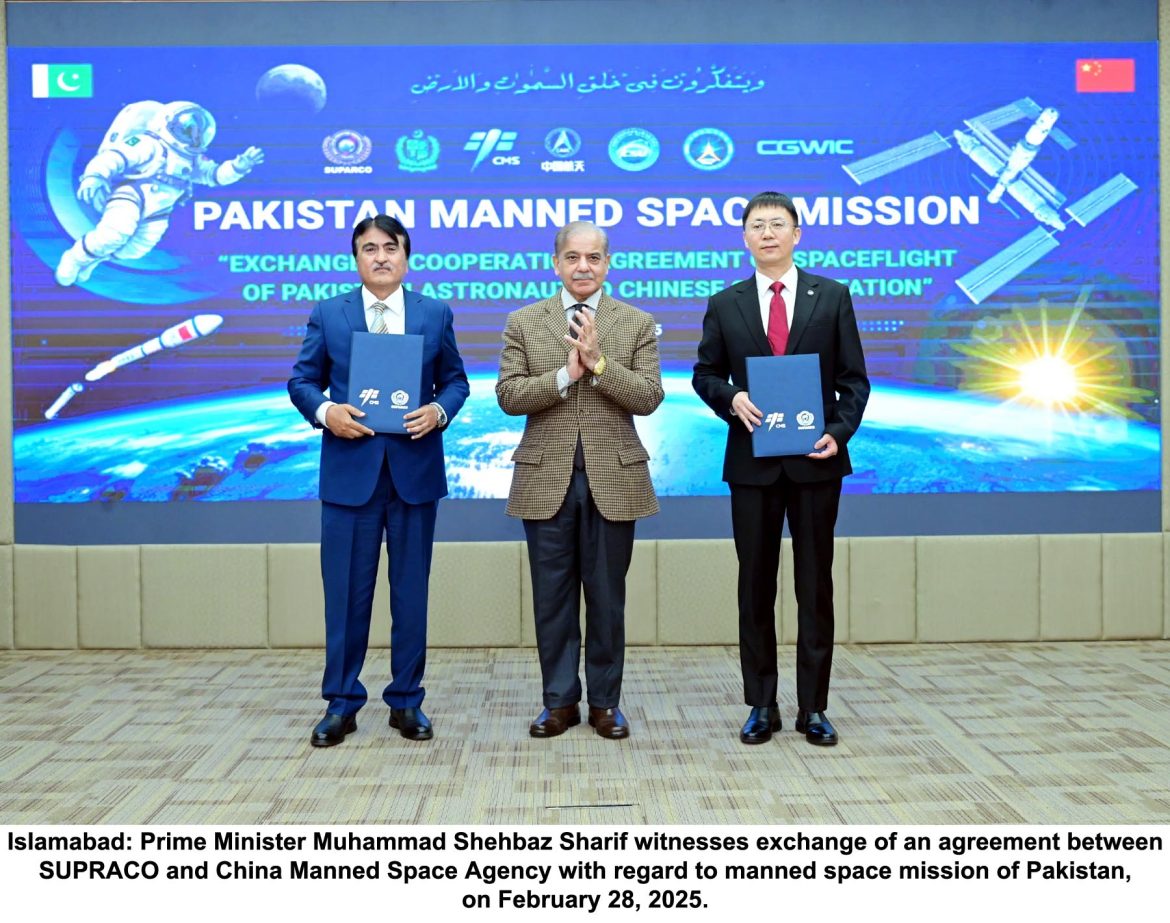 وزیراعظم محمد شہباز شریف نے کہاہے کہ پاکستان اورچین کے درمیان خلائی تحقیق میں تعاون کاسمجھوتہ اورپہلے پاکستانی خلا باز کو چین کے خلائی سٹیشن تک لے جانے کااقدام پاک چین دوستی کاایک نیاباب ہے،سمجھوتہ سے دونوں ممالک کے درمیان مضبوط دوستی کی عکاسی ہو رہی ہے،پاک چین اقتصادی راہداری کے عظیم منصوبہ کے ذریعہ پاکستان میں بڑے بڑے منصوبے مکمل کئے گئے، سپارکوکوپاک چین خلائی تعاون سے بھرپورطریقے سے استفادہ کرنا ہو گا۔ان