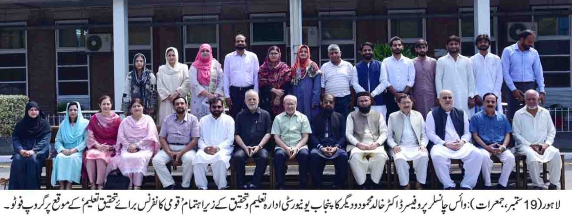 وائس چانسلر پنجاب یونیورسٹی پروفیسر ڈاکٹر خالد محمود نے کہا ہے کہ پاکستان میں سکولوں سے باہر بچوں کو سکولوں میں داخل کرانے کے لئے سب کو مل کر مہم چلانا ہوگی۔ وہ پنجاب یونیورسٹی ادارہ تعلیم و تحقیق کے زیر اہتمام ’سکول سے محروم بچے: اسباب و حل‘ کے موضوع پرمنعقدہ چوتھی سالانہ ’قومی کانفرنس برائے تحقیق ِ تعلیم‘ سے وحید شہید حال میں خطاب کررہے تھے۔ اس موقع پر ڈائریکٹر ادارہ تعلیم و تحقیق پروفیسر ڈاکٹر طارق محمود،معروف صحافی و تجزیہ نگار سلمان غنی، چیئرمین شعبہ ایڈوانسڈ سٹڈیز ان ایجوکیشن پروفیسر ڈاکٹر محمد شاہد فاروق، کانفرنس کو آرڈینیٹر ڈاکٹر شازیہ ملک، تعلیمی ماہرین،محققین، فیکلٹی ممبران اور طلباؤطالبات نے بڑی تعداد میں شرکت کی۔اپنے خطاب میں وائس چانسلر پروفیسر ڈاکٹر خالد محمود نے کہا کہ بدقسمتی سے پاکستان میں تعلیم کو ترجیحات میں شامل نہیں کیا گیا۔ انہوں نے کہا کہ ہمارے بعد آزاد ہونے والے غریب ممالک بھی تعلیم و تحقیق کو فروغ دے کر آگے نکل گئے۔ انہوں نے کہا کہ وسائل کی کمی کے باوجود بھی اگر مل کر کام کیا جائے تو مسائل کا تدارک ممکن ہے۔ انہوں نے کہا کہ پاکستان کی آبادی کے اعتبار سے 39فیصد بچوں کا سکول سے باہر رہنا ایک بہت بڑا المیہ ہے۔ انہوں نے بہترین کانفرنس کے انعقاد پر ادارہ تعلیم و تحقیق کی تعریف کرتے ہوئے کہا کہ نوجوان طلباء ہی ہماری امیدوں کا مرکز ہیں۔معروف صحافی سلمان غنی نے کہا کہ دنیا بھر میں وہی قومیں آگے ہیں جنہوں نے تعلیم وتحقیق کو فروغ دے کر اپنی نسلوں کو سنوارا۔ انہوں نے کہا کہ پاکستان اس خطے کے تعلیم کے خواندگی کے اعتبار سے نو ممالک میں صرف افغانستان سے آگے ہے جو ترقی کے میدان میں پیچھے رہنے کی بڑی وجہ ہے۔انہوں نے کہا کہ ملک کو تعلیمی بحران سے نکالنے کے لئے ریاست کے تمام اداروں، افراد کو یکسوع ہونا پڑے گا۔ انہوں نے کہا کہ جب تک پاکستان میں تعلیم کو سر فہرست نہیں رکھا جائے گا ملک ترقی نہیں کرے گا۔ انہوں نے کہا کہ ہمارے بچے شعور اور صلاحیت میں کسی سے کم نہیں اور دنیا بھر میں ہونے والے مقابلوں میں نمایاں پوزیشن حاصل کررہے ہیں۔ انہوں نے کہا کہ لیڈرشپ کے فقدان کے باعث پاکستان اخلاقی بحران کا شکار ہے۔انہوں نے کہا کہ ڈگریوں کے ساتھ مہارتوں کو فروغ دینے کیلئے جدید نصاب وقت کی اہم ضرورت ہے۔ پروفیسر ڈاکٹر طار ق محمود نے کہا کہ سکول سے باہر رہنے والے بچے معا شرے میں خرابی اور بگاڑ کا باعث بنتے ہیں۔ انہوں نے کہا کہ تعلیم ہر بچے کا بنیادی حق ہے جس کے لئے مزید اقدامات کئے جانے چاہیے۔ انہوں نے کہا کہ بچوں کے سکول میں نہ جانے کی وجوہات کا جاننا ضروری ہے تاکہ اس کا سدباب کیا جاسکے۔