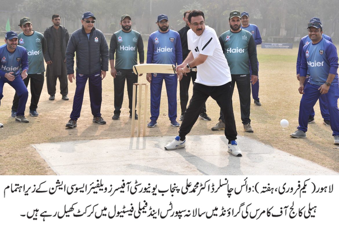 پنجاب یونیورسٹی آفیسرز ویلفیئر ایسوسی ایشن کے زیر اہتمام ہیلی کالج آف کامرس کی گراؤنڈ میں سالانہ سپورٹس اینڈ فیملی فیسٹیول کا انعقاد کیا گیا۔ اس موقع پر وائس چانسلر پنجاب یونیورسٹی پروفیسر ڈاکٹر محمد علی، پرنسپل ہیلی کالج آف کامرس پروفیسر ڈاکٹر حافظ ظفر احمد، رجسٹرار ڈاکٹر احمد اسلام، ڈائریکٹر سپورٹس ڈاکٹر محمد شبیر سرور،صدر پنجاب یونیورسٹی آفیسرز ویلفیئر ایسوسی ایشن ڈاکٹر توقیر علی، جنرل سیکرٹری رانا مظفر علی،سپورٹس فیسٹیول کوآرڈینیٹرملک سرفرازخالد و دیگر انتظامی افسران نے شرکت کی۔ فیسٹیول میں افسران کے درمیان کرکٹ، ٹگ آف وار اور ایتھلیٹکس کے مقابلوں کا انعقاد کیا گیاجبکہ کرکٹ مقابلوں میں رجسٹرار ٹائیگر، اولڈ کیمپس تھنڈر، کنٹرولر بادشاہ اور آئی ٹی ایگل کی ٹیموں نے حصہ لیا۔اپنے خطاب میں وائس چانسلر ڈاکٹر محمد علی نے کہا کہ کھیل جسمانی صحت کے لیے ضروری ہیں۔ انہوں نے کہا کہ ایسی سرگرمیوں میں حصہ لینے سے کام کرنے کی صلاحیت میں اضافہ ہوتا ہے۔صدرپنجاب یونیورسٹی آفیسرز ایسو سی ایشن ڈاکٹر توقیر علی نے کہا کہ یونیورسٹی کے افسران دن رات محنت کرتے ہیں جبکہ سپورٹس فیسٹیول انہیں تفریح کا موقع فراہم کرتا ہے۔ انہوں نے تقریب میں شرکت کرنے پر وائس چانسلر ڈاکٹر محمد علی و دیگرشرکاء کا شکریہ ادا کیا۔ فیسٹیول میں افسران کے اہل خانہ اور بچوں نے بھی شرکت کی۔ اس موقع پر کھانے پینے کے سٹالز بھی لگائے گئے۔ تقریب میں بچوں کے درمیان رسہ کشی کا مقابلہ کروایا گیا۔