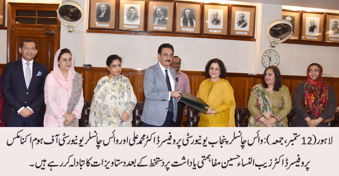 پنجاب یونیورسٹی اوریونیورسٹی آف ہوم اکنامکس کے درمیان تعلیمی تعاون کا معاہدہ طے پاگیا۔ معاہدے کی رو سے پنجاب یونیورسٹی ہوم اکنامکس یونیورسٹی لاہور کو اپنے وسائل تک رسائی فراہم کرے گی۔اس سلسلے میں مفاہمتی یاداشت پر دستخط کی تقریب وائس چانسلر پنجاب یونیورسٹی آفس کے کمیٹی روم میں منعقد ہوئی۔تقریب میں وائس چانسلر پنجاب یونیورسٹی پروفیسر ڈاکٹر محمد علی اوروائس چانسلر ہوم اکنامکس یونیورسٹی پروفیسر ڈاکٹر زیب النساء حسین نے دستاویزات پر دستخط کیے۔ اس موقع پر پنجاب یونیورسٹی کی ڈائریکٹر ایکسٹرنل لنکجز پروفیسر ڈاکٹر یامینہ سلمان،ڈائریکٹر اورک یونیورسٹی آف ہوم اکنامکس ڈاکٹر ارم رباب و دیگرنے شرکت کی۔ ایم او یو کا بنیادی مقصد پنجاب یونیورسٹی اور ہوم اکنامکس یونیورسٹی کے درمیان تعاون پر مبنی رشتہ قائم کرنا ہے تاکہ پنجاب یونیورسٹی میں دستیاب منتخب لیبارٹری اور شعبہ جاتی وسائل کو استعمال کرتے ہوئے ہوم اکنامکس یونیورسٹی کے طلباء کی تعلیمی اور عملی تربیتی ضروریات کو پورا کیا جا سکے۔پنجاب یونیورسٹی کالج آف انفارمیشن ٹیکنالوجی، انسٹیٹیوٹ آف اپلائیڈ سائیکالوجی اور کالج آف آرٹ اینڈ ڈیزائن یونیورسٹی آف ہوم اکنامکس کے طلباء کو کمپیوٹنگ پروگراموں، نفسیاتی جانچ کے آلات اور بی ایس سائیکالوجی کے طلباء کے لیے تجرباتی سیٹ اپس کے لیے مصنوعی ذہانت اور ڈیجیٹل لاجک ڈیزائن لیبز تک رسائی فراہم کرے گا اور مشترکہ کام کی نمائش یا مشترکہ کام کے مواقع بھی فراہم کرے گا۔اس موقع پر بات چیت کرتے ہوئے پروفیسر ڈاکٹر محمد علی نے سماجی چیلنجوں سے نمٹنے میں سرکاری یونیورسٹیوں کی شراکت داری کے کردار پر زور دیا۔ انہوں نے امید ظاہر کی کہ دونوں یونیورسٹیاں اختراعی آئیڈیاز کے لیے کام کریں گی جس سے معاشرے کو فائدہ پہنچے۔ پروفیسر ڈاکٹر زیب النساء حسین نے کہا کہ یہ اشتراک ہوم اکنامکس یونیورسٹی کے طلباء کو ان کے علم میں اضافہ کرکے بااختیار بنانے میں مفید ثابت ہوگا۔