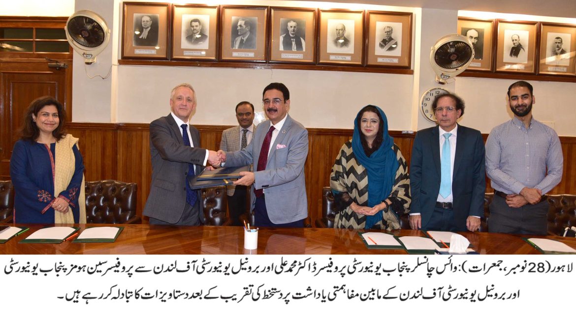 پنجاب یونیورسٹی اور برونیل یونیورسٹی آف لندن کے مابین علمی و تحقیقی سرگرمیوں کو فروغ دینے کے لئے معاہدہ