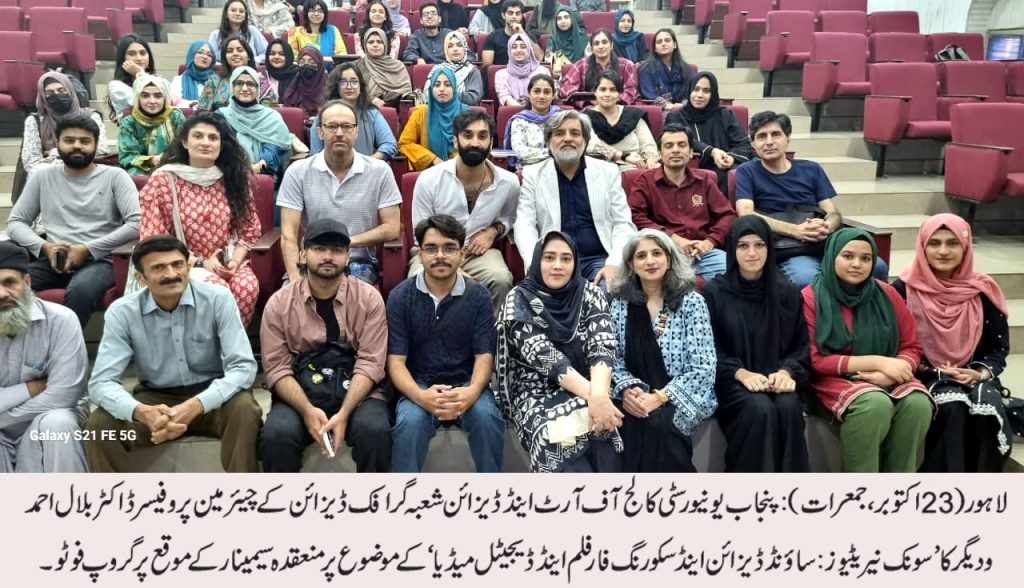 پنجاب یونیورسٹی کالج آف آرٹ اینڈ ڈیزائن کے شعبہ گرافک ڈیزائن کے زیر اہتمام ’سونک نیریٹیوز:ساؤنڈ ڈیزائن اینڈ سکورنگ فار فلم اینڈ ڈیجیٹل میڈیا‘ کے موضوع پر سیمینار