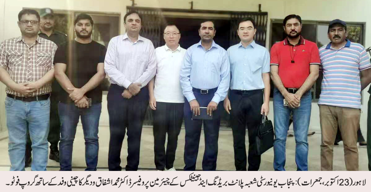 :پنجاب یونیورسٹی شعبہ پلانٹ بریڈنگ اینڈ جینیٹکس کے زیر اہتمام چین کے معروف تحقیقی و زرعی اداروں کے ایک اعلیٰ سطحی وفد کے ساتھ اہم اجلاس منعقد ہوا
