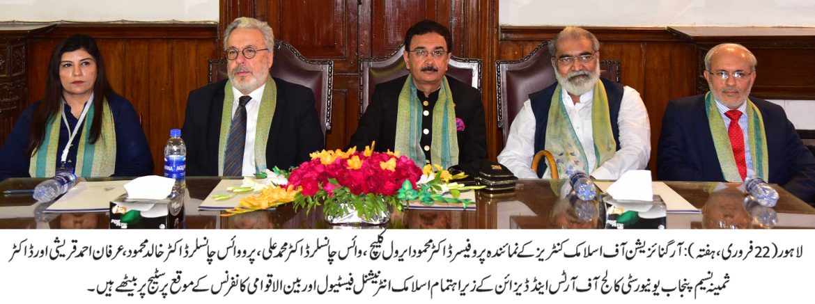 ”اسلامک آرٹس اینڈ آرکیٹیکچر“کے موضوع پر چوتھا اسلامک انٹرنیشنل فیسٹیول اور بین الاقوامی کانفرنس کا انعقاد: پنجاب یونیورسٹی کالج آف آرٹس اینڈ ڈیزائن کے زیر اہتمام ”اسلامک آرٹس اینڈ آرکیٹیکچر“کے موضوع پر چوتھا اسلامک انٹرنیشنل فیسٹیول اور بین الاقوامی کانفرنس کا انعقاد کیا گیا۔ اس موقع پر آرگنائزیشن آف اسلامک کنٹریز کے نمائندہ پروفیسر ڈاکٹر محمود ایرول کلیچ نے بطور مہمان خصوصی شرکت کی جبکہ وائس چانسلرپنجاب یونیورسٹی پروفیسر ڈاکٹر محمد علی، پرو وائس چانسلر پروفیسر ڈاکٹر خالد محمود، اسلامک آرٹ فیسٹیول کے بانی عرفان احمد قریشی، ماہر تعمیرات اور سکالر کامل خان ممتاز، کالج پرنسپل پروفیسر ڈاکٹر ثمینہ نسیم اورآرٹسٹس سمیت طلباؤ طالبات نے بڑی تعداد میں شرکت کی۔اس تقریب نے پاکستان سمیت دنیا بھر کے شرکاء کواسلامی فن اور فن تعمیر کے بھرپور ورثے پر تبادلہ خیال کرنے کے لیے پلیٹ فارم مہیا کیا۔تقریب کی خاص بات پروفیسر ڈاکٹر محمود ایرول کلیچ کی موجودگی تھی، جو استنبول، ترکی میں اسلامی تاریخ، فن اور ثقافت کے ڈائریکٹر جنرل کے طور پر بھی خدمات انجام دیتے رہے ہیں۔ ان کی بصیرت اور شراکت نے کانفرنس کے مباحثوں کی اہمیت میں اضافہ کیا۔وائس چانسلر پنجاب یونیورسٹی چانسلر ڈاکٹر محمد علی نے منتظمین اور شرکاء کی کاوشوں کو سراہتے ہوئے کہا کہ اسلامی فن، فن تعمیر کی ثقافت اور تاریخ کو فروغ دینے میں ایسی سرگرمیاں اہم کردار ادا کرتی ہیں۔ تقریب ایک شاندار آرٹ نمائش کے ساتھ جاری رہی، جس میں کئی نامور فنکاروں اور اعلیٰ تعلیمی اداروں سے تعلق رکھنے والی شخصیات کے کاموں کی نمائش کی گئی۔ڈاکٹر ثمینہ نے کہا کہ کالج علمی فضیلت اور ثقاف