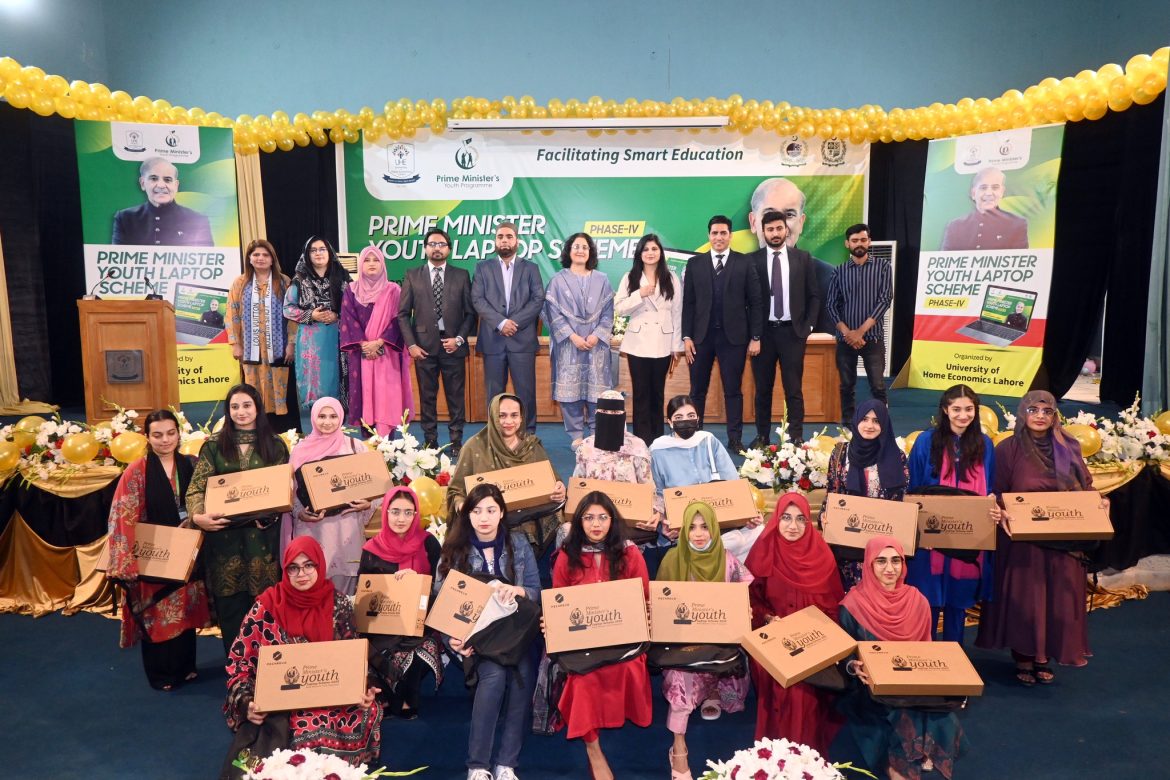 پرائم منسٹر لیپ ٹاپ سکیم فیز فور کے تحت ہوم اکنامکس یونیورسٹی کی ذہین طالبات میں لیپ ٹاپ تقسیم کرنے کی خصوصی تقریب کا انعقاد کیا گیا۔ تقریب میں ہوم اکنامکس یونیورسٹی کے پندرہ سے زائد شعبہ جات کی 131 طالبات میں لیپ ٹاپ تقسیم کیے گئے۔ تقریب کی مہمان خصوصی وائس چانسلر پروفیسر ڈاکٹر زیب النساء حسین تھی جبکہ پرائم منسٹر یوتھ پروگرام کے خصوصی نمائندے رضوان انور، ماہا جمیل ، اسفند یار اور ڈاکٹر محمد عمران دین نے بھی شرکت کی ۔ وائس چانسلر پروفیسر ڈاکٹر زیب النساء حسین نے کہا کہ ہوم اکنامکس یونیورسٹی کی ایم فل اور بی ایس آنرز کی طالبات کو میرٹ پر لیپ ٹاپ تقسیم کیے گئے ہیں۔ انھوں نے کہا کہ حکومت پاکستان ملک میں ڈیجیٹل اکانومی کو فروغ دے رہی ہے۔ ڈاکٹر زیب النساء حسین کا کہنا تھا کہ طالبات لیپ ٹاپ کے ذریعے ڈیجیٹل مہارتیں سیکھیں، ملکی ترقی میں حصہ ڈالیں۔ اُن کا کہنا تھا کہ حکومت لیپ ٹاپ کے ذریعے طالبات کو ایمپاور کر رہی ہے۔ وائس چانسلر کا کہنا تھا کہ پیشہ وارانہ شعبوں میں ٹیکنالوجی کلیدی اہمیت کی حامل ہے اور لیپ ٹاپ کے ذریعے طالبات ٹیکنالوجی کو موثر استعمال کر سکیں گے۔