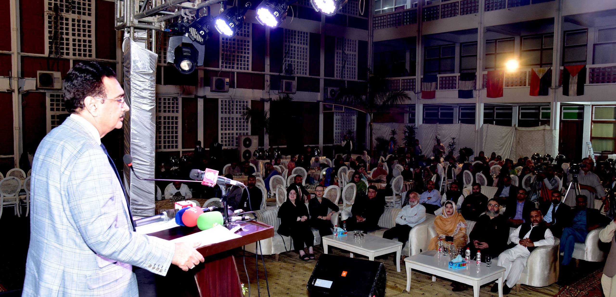 :وائس چانسلر پنجاب یونیورسٹی پروفیسر ڈاکٹر محمد علی نے کہا کہ ہمیں مارکیٹ کی ضروریات کے مطابق ایسے گرایجوئیٹس پیدا کرنا ہوں گے جو نوکری بھی اپنی شرائط پر کرسکیں۔ وہ پنجاب یونیورسٹی ہیلی کالج آف کامرس کے زیر اہتمام ’ہیلے ریسرچ ویک‘ کی اختتامی تقریب میں شرکاء سے خطاب کررہے تھے۔ اس موقع پرپنجاب یونیورسٹی کے پرووائس چانسلر پروفیسرڈاکٹرخالد محمود، کالج پرنسپل پروفیسرڈاکٹرحافظ ظفراحمد،چیئرمین انٹیلیکچوئل پراپرٹی آرگنائزیشن فرخ عامل، چینی سفارتخانے کے نمائندے لی ہوٹنگ،فیکلٹی ممبران،محققین اور طلباؤطالبات نے بڑی تعداد میں شرکت کی۔اپنے خطاب میں وائس چانسلرپروفیسرڈاکٹر محمد علی نے کہا کہ آج بھی طلباء صرف نوکری کے حصول کیلئے ڈگریاں لینا چاہتے ہیں مگر اب وقت ہے کہ جامعات اس روش کو بدلنے کے لئے اقدامات کریں۔ انہوں نے کہا کہ ہر طالبعلم کوہم نصابی سرگرمیوں میں بھرپور شرکت کرنی چاہیے اورڈرامیٹک سوسائٹیوں کا حصہ بننے والے طلباء کی بھی حوصلہ افزائی ضروری ہے۔ انہوں نے کہا کہ فلاح وبہبود کے کاموں میں حصہ لینے والے اورانٹرنشپ کرنے والے طلباء کو کریڈٹ ملنا چاہیے۔انہوں نے کہا کہ طلباء کو کلاس روم سے زیادہ ایسی سرگرمیوں سے سیکھنے کا موقع ملتا جہاں کامیاب افراداپنے تجربات شیئر کرتے ہیں۔ انہوں نے بہترین تقریب کے انعقاد پر منتظمین کو مبارک باد پیش کرتے ہوئے امید ظاہر کی کہ یہاں سے سیکھ کر طلباء عملی میدان میں استفادہ کریں گے۔ فرخ عامل نے کہا کہ نوجوانوں کو نوکری کی بجائے انٹرپنیورشپ کواپنانا چاہیے۔انہوں نے کہا کہ ادارے نے نیا ڈیجیٹل نظام متعارف کرایا جس کے تحت شکایات آن لائن درج کرائی جا سکتی ہیں۔ پروفیسرڈاکٹر حافظ ظفر احمد نے شرکاء کا شکریہ ادا کرتے ہوئے کہاکہ پنجاب یونیورسٹی ہیلی کالج کامرس میں طلباؤطالبات کی تخلیقی صلاحیتوں کو فروغ دینے کے لئے ایسی سرگرمیوں کا انعقاد آئندہ بھی جاری رہے گا۔