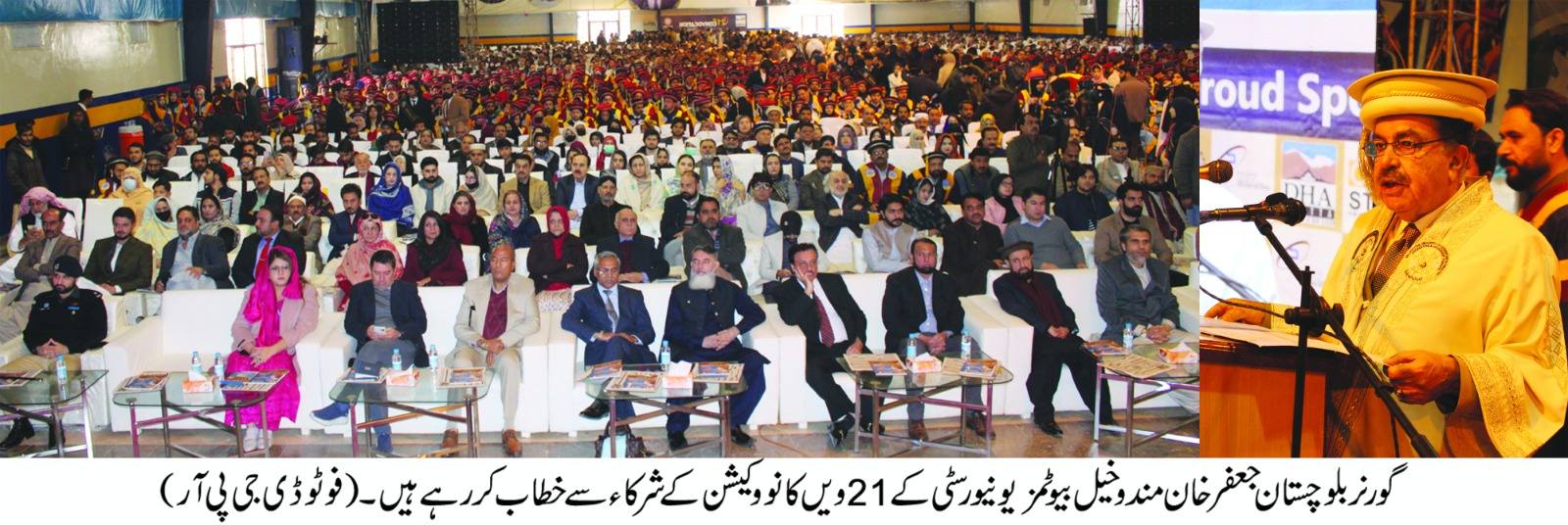 ان خیالات کا اظہار انہوں نے بیوٹمز یونیورسٹی کے 21ویں کانووکیشن سے خطاب کرتے ہوئے کیا. اس موقع پر صوبائی وزیر تعلیم راحیلہ حمید خان درانی، وائس چانسلر بیوٹمز یونیورسٹی پروفیسر ڈاکٹر خالدحفیظ، آل بلوچستان پبلک سیکٹر یونیورسٹیوں کے وائس چانسلرز صاحبان، ڈین فیکلٹیز، مہمانانِ گرامی، والدین اور فارغ التحصیل ہونے والے گریجویٹس شریک تھے. واضح رہے کہ 21ویں کانووکیشن میں 10 پی ایچ ڈی، 685 بی ایس اور 41 ایم ایس اور ایم بی اے گریجویٹس پر مشتمل گریجویٹ طلباءکو گولڈ میڈل اور ڈگریاں دی گئیں۔