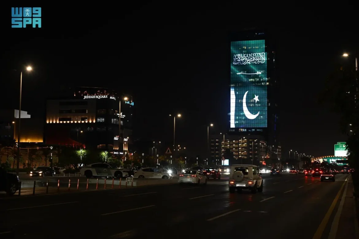 مملکت سعودی عرب کے مختلف شہروں کی نمایاں ترین عمارتوں اور ٹاورز کو مملکت اور پاکستان کے پرچموں سے مزین کیا گیا، تاکہ پاکستان اور سعودی عرب کے درمیان “مشترکہ اسٹریٹجک دفاعی معاہدے” پر دستخطوں کا جشن منایا جا سکے۔ یہ معاہدہ اسلامی جمہوریہ پاکستان کے وزیرِاعظم جناب محمد شہباز شریف کے دورۂ سعودی عرب کے موقع پر بدھ کی شب طے پایا۔مملکت کے مختلف علاقوں کے اہم ترین مقامات کو بھی پاکستان اور سعودی عرب کے پرچموں کے رنگوں سے منور کیا گیا، جو اس تاریخی معاہدے پر عوامی خوشی کے اظہار کی عکاسی کرتا ہے۔”مشترکہ اسٹریٹجک دفاعی معاہدے” پر دستخطوں کی یہ تقریبات اس بات کا عملی ثبوت ہیں کہ سعودی عرب اور پاکستان کے درمیان تعلقات کی گہرائی تقریباً 78 برسوں پر محیط ہے اور یہ دونوں ممالک کی حکومتوں اور عوام کے درمیان اخوت اور اسلامی یکجہتی کے مضبوط رشتوں کی جھلک پیش کرتی ہیں۔