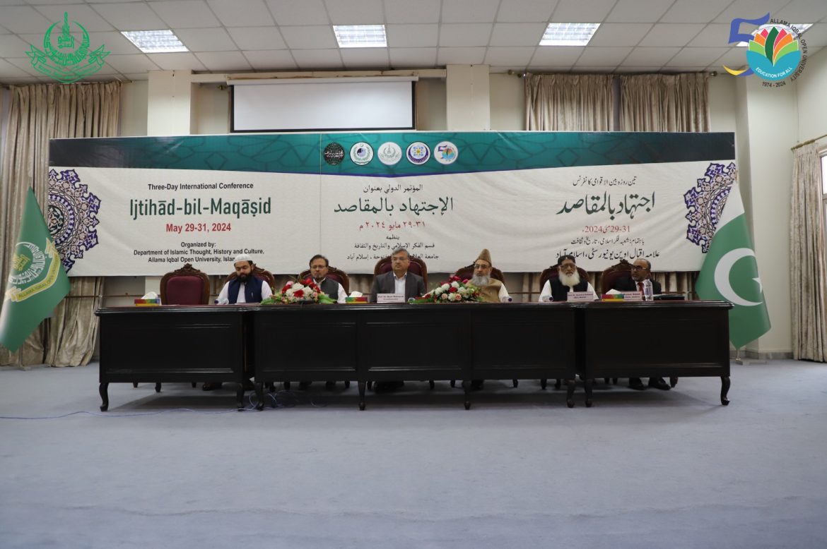 کانفرنس کے اغراض و مقاصد بیان کرتے ہوئے کلیہ عربی و علوم اسلامیہ کے ڈین پروفیسر ڈاکٹر محی الدین ہاشمی نے کہا کہ پاکستان میں اِس موضوع پر منعقدہ پہلی کانفرنس کے لئے ہمیں 100سے زائد مقالات موصول ہوئے ہیں اور50کے قریب ملکی و غیر ملکی علماء و اساتذہ شرکت کررہے ہیں۔انہوں نے کہا کہ اجتہاد کی روایت کمزور ہونا اقوام کے زوال کا سبب بنتا ہے اس لئے اجتہادر کے فروغ کے لئے ہم نے اِس موضوع کا انتخاب کیا تھا۔نائب مہتمم و شیخ الحدیث جامعہ امدادیہ، فیصل آباد، مولانا مفتی محمد زاہد نے کہا کہ اجتہاد بالمقاصد درحقیقت اجتہاد بانتائج ہوتا ہے جس سے ہم اندازہ لگاتے ہیں کہ شریعت کو کون کون سے نتائج مطلوب ہوتے ہیں اور اللہ اور رسول پاکؐ کی منشا کیا ہے۔انہوں نے اہل علم کے لئے3 روزہ کانفرنس کے انعقاد پر علامہ اقبال اوپن یونیورسٹی کے وائس چانسلر پروفیسر ڈاکٹر ناصر محمود، کلیہ عربی و علوم اسلامیہ کے ڈین، پروفیسر ڈاکٹر محی الدین ہاشمی اور دیگر منتظمین کو مبارکباد پیش کی۔دیگرمقررین نے عالم اسلام کو درپیش نئے مسائل کے حل کے لئے اجتہاد کی ضرورت پر زور دیا۔انہوں نے کہا کہ جدید پیش آمدہ مسائل کے حل کے لئے اسلام نے اجتہاد کا دروازہ کھلا رکھا ہے تاکہ ہر دم انسان کی راہنمائی ممکن ہوسکے۔