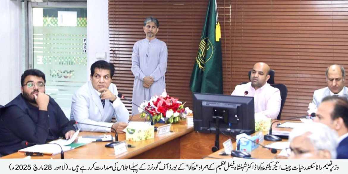 وزیر تعلیم رانا سکندر حیات کی زیر صدارت پنجاب ایجوکیشن، کریکلم، ٹریننگ اینڈ اَسیسمنٹ اتھارٹی (پیکٹا) کے بورڈ آف گورنرز کا پہلا اجلاس منعقد ہوا جس میں پیکٹا کے قیام کے بعد فعال کردار کے حوالے سے متعلقہ امور پر سیر حاصل مشاورت کی گئی۔ چیف ایگزیکٹو پیکٹا ڈاکٹر شہنشاہ فیصل عظیم نے اجلاس کو ورکنگ پر مفصل بریفنگ دی۔ اجلاس میں پیکٹا ہیڈ کوارٹر، آرگینوگرام اور ذیلی شعبہ جات کے قیام کی منظوری دی گئی اور نئی قائم شدہ اتھارٹی کے تحت پیکٹا کے مختلف امور کو بہتر انداز میں چلانے کیلئے کمیٹیاں بھی تشکیل دی گئیں۔ وزیر تعلیم نے کہا کہ پیکٹا کا بورڈ آف گورنرز چوٹی کے ماہرین تعلیم پر مشتمل ہے جن کی راہنمائی میں نصاب، تربیت اور اِمتحانات کو ایک مربوط نظام میں ڈھال کر تعلیم میں نئی جہتوں کی بنیاد رکھ دی ہے۔ انہوں نے کہا کہ پنجاب کریکلم اینڈ ٹیکسٹ بک بورڈ، پنجاب ایگزامینیشن کمیشن اور قائداعظم اکیڈمی فار ایجوکیشنل ڈویلپمنٹ کو آپس میں انضمام کر کے پیکٹا تشکیل دی گئی ہے جس سے تعلیم، تدریس اور ٹریننگ کے معیار میں بھی بہتری آئے گی اور نصاب، تحقیق اور جدید تقاضوں کے مطابق اساتذہ کی تربیت میں مدد ملے گی۔ وزیر تعلیم نے محکمانہ اجلاس ہر ممکن حد تک پیپر لیس کرنے اور میٹرک ٹیک کی موثر تدریس کیلئے اساتذہ کی ٹریننگ کی بھی ہدایت کی۔ اجلاس میں میٹرک ٹیک، جماعت نہم کیلئے نئے نصاب کے مطابق تیار کردہ فیشن ڈیزائننگ، کمیونیکیشن سکلز اینڈ پرسنل گرومنگ، ایگری کلچر سائنس اور انفارمیشن اینڈ کمیونیکیشن ٹیکنالوجی کی کتب کے علاوہ اساتذہ کی استعداد بڑھانے کیلئے مختلف تربیتی کورسز کی بھی منظوری دی گئی۔ رانا سکندر حیات نے اس امید کا بھی اظہار کیا کہ پیکٹا کے قیام کے بعد آئندہ ہر تعلیمی سیشن میں کتب کی بروقت پرنٹنگ و ترسیل یقینی بنائی جائے گی۔ پنجاب ایجوکیشن، کریکلم، ٹریننگ اینڈ اسیسمنٹ اتھارٹی (پیکٹا) کے بورڈ آف گورنرز کے اجلاس میں پارلیمانی سیکرٹری برائے تعلیم اور وائس چیئر پرسن پیکٹا نوشین عدنان، سیکرٹری سکولز ایجوکیشن خالد نذیر وٹو، سی ای او پیکٹا ڈاکٹر شہنشاہ فیصل عظیم، ایم پی ایز اسامہ فضل، عاصمہ ناز عباسی، شکیلہ جاوید کے علاوہ ماہرین تعلیم ڈاکٹر فیصل باری، سرمد یوسف، شہزاد رائے، عنبرین عجائب، معیز نذیر اور دیگر متعلقہ محکموں کے سربراہان و نمائندگان نے شرکت کی۔