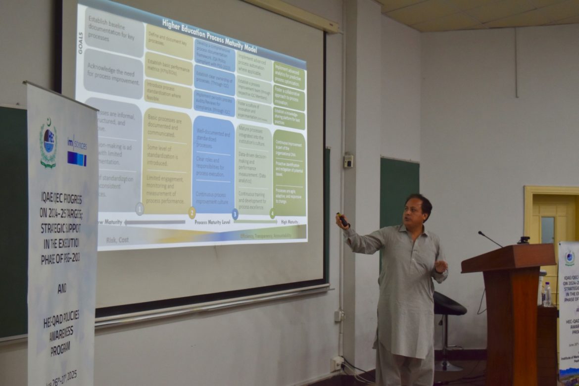 اعلیٰ تعلیمی کمیشن (HEC) کے کوالٹی ایشورنس ایجنسی (QAA) نے انسٹیٹیوٹ آف مینجمنٹ سائنسز (IMSciences) پشاور کے اشتراک سے خیبر پختونخوا کے ڈگری ایوارڈ کرنے والے اداروں (DAIs) کے اسٹیک ہولڈرز کے لیے دو روزہ اسٹریٹیجک سپورٹ پروگرام کا انعقاد کیا۔پروگرام کا عنوان تھا: “IQAE/QEC دفاتر کی 2024-25 اہداف پر پیش رفت؛ PSG-2023 کے نفاذ کے مرحلے میں اسٹریٹیجک معاونت اور HEC-QAD پالیسیوں سے آگاہی پروگرام”۔ اس دو روزہ سرگرمی میں صوبہ بھر کے مختلف تعلیمی اداروں کے وائس چانسلرز، ادارہ جاتی سربراہان، انٹرنل کوالٹی کنٹرول (IQC) کے نمائندگان اور کوالٹی ایشورنس (QA) ٹیموں نے شرکت کی۔پروگرام کے دوران ایک اعلیٰ سطحی آن لائن اجلاس کا بھی انعقاد کیا گیا، جس میں ادارہ جاتی قیادت اور HEC کے نمائندوں نے مشترکہ طور پر تعلیمی معیار کی بہتری میں قیادت کے کردار پر زور دیا۔ مقررین نے کہا کہ کوالٹی ایشورنس صرف ایک پالیسی نہیں بلکہ ایک ادارہ جاتی ثقافت کا حصہ ہے، جس میں تمام فریقین کی شمولیت ضروری ہے۔